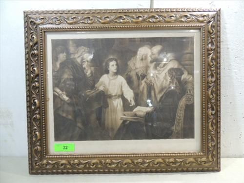 25X21 VINTAGE RELIGOUS PRINT JESUS TEACHING IN THE TEMPLE. OLD PRINT IN NEWER FRAME. AS SHOWN. VIEW PICTURE FOR DETAIL.