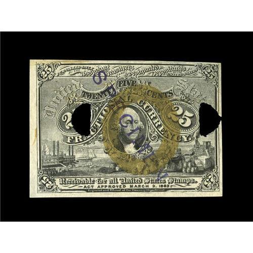 <B>25c Second Issue Experimental Choice New.</B></I> A decent example of this more common experimental that has bright bronzing with "S-18-63" surcharges as well.