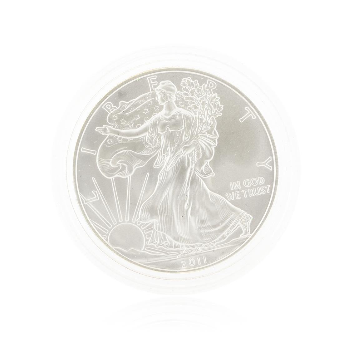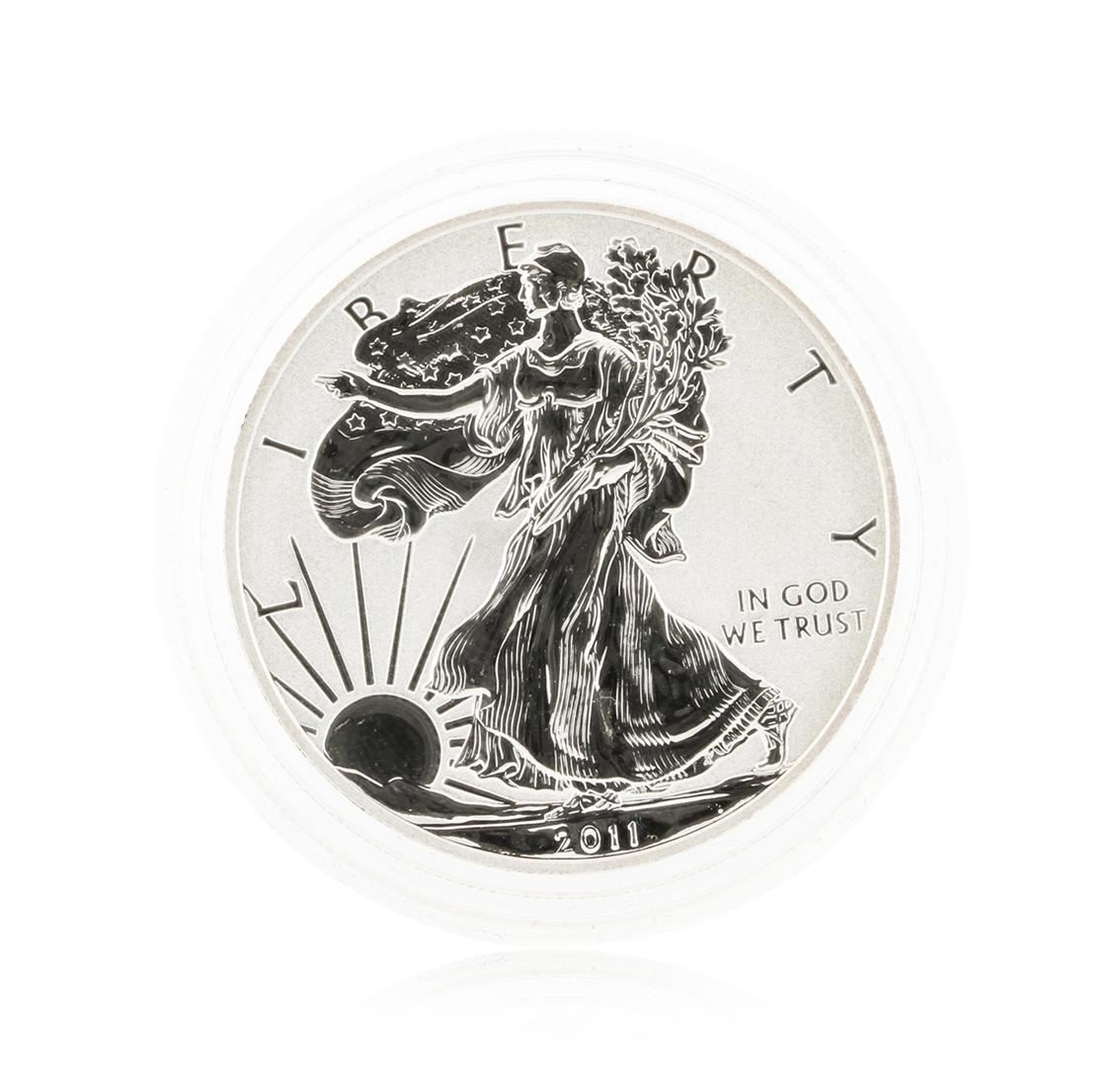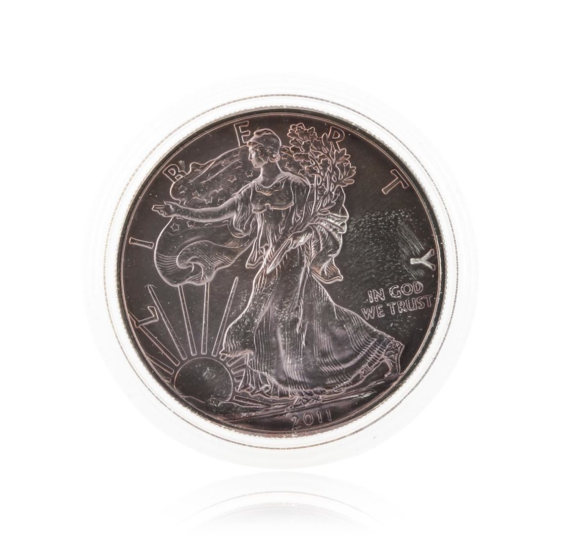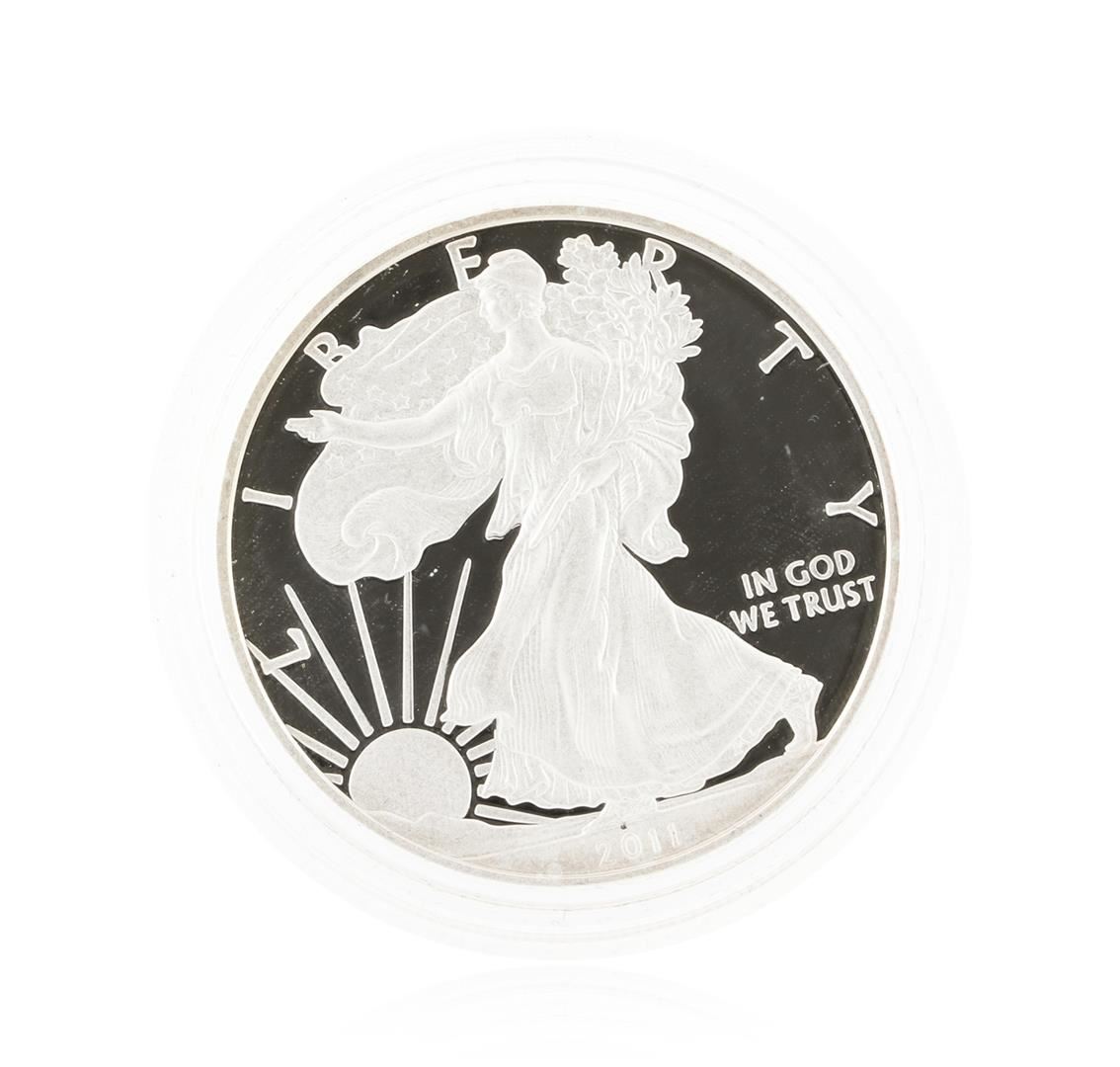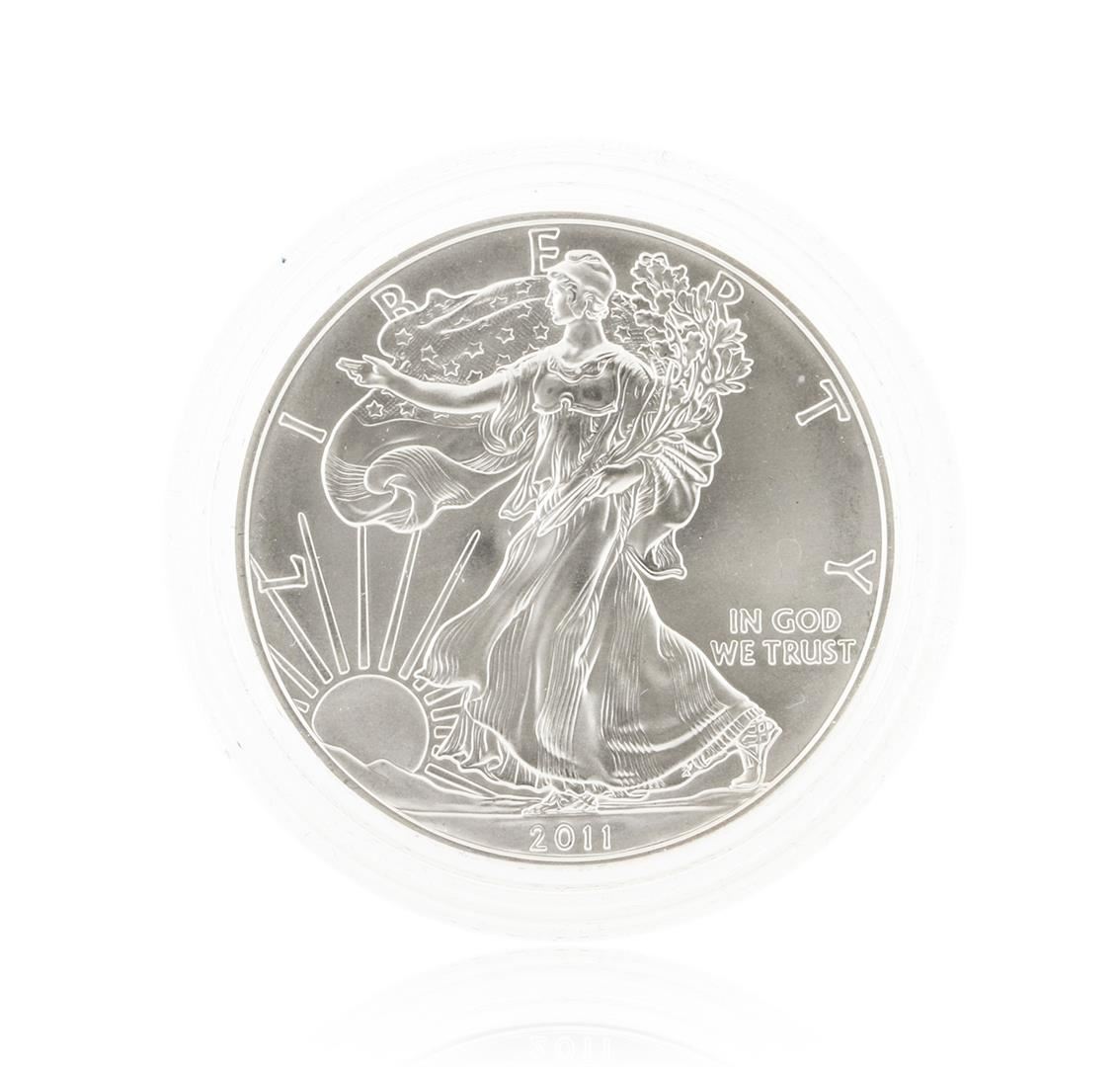 One 25th Anniversary American Eagle Silver Coin Set containing five 2011 American Eagle silver coins.