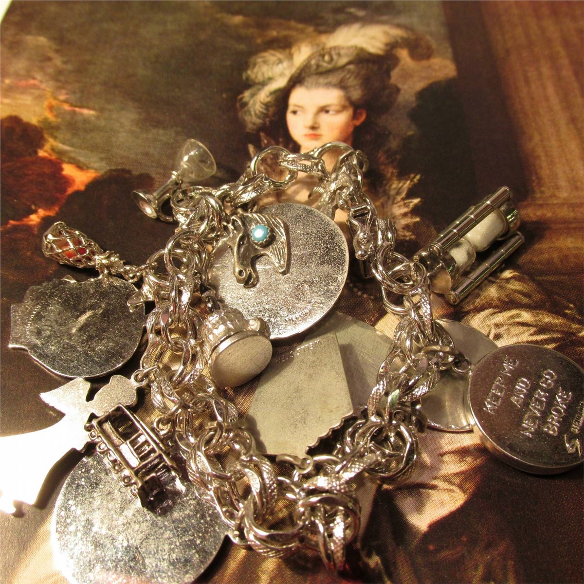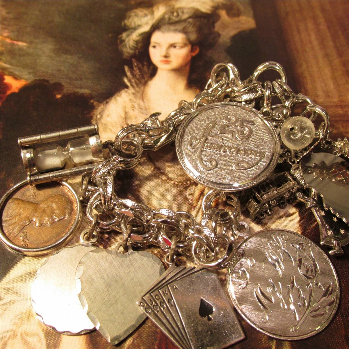 25th Anniversary Silver Charm Bracelet with lots of Charms, most are marked "Sterling". Weighs 1.836 Troy Ounces.
