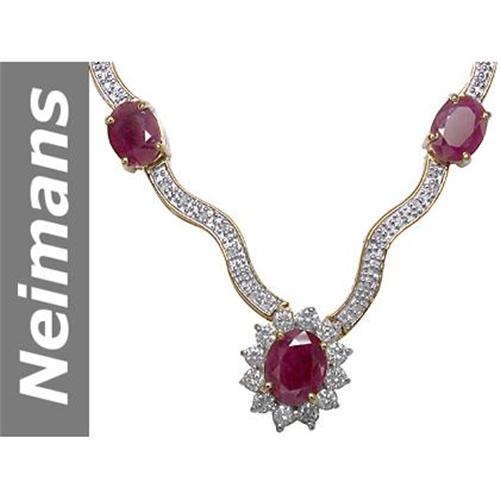 </tr></table><table border=0 width=100% cellspacing=0 cellpadding=10><tr><td valign=top style='background-repeat: no-repeat; font-family: Verdana; font-size: 8pt'><b><!-- ///START/// INSERT JEWELRY SPECIFIC DATA --><font size=5>Graduate Gemologist Certified 26.02 Carat Ruby & Diamond Necklace elegantly set in solid 14kt gold!!</font><font size=5>