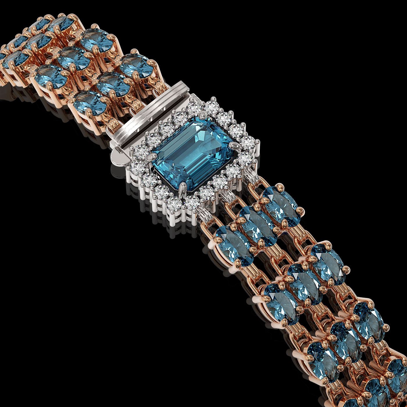 REF-318H2R - SKU: 45972 ---- 26.02 ctw London Topaz & Diamond Bracelet 14K Rose Gold