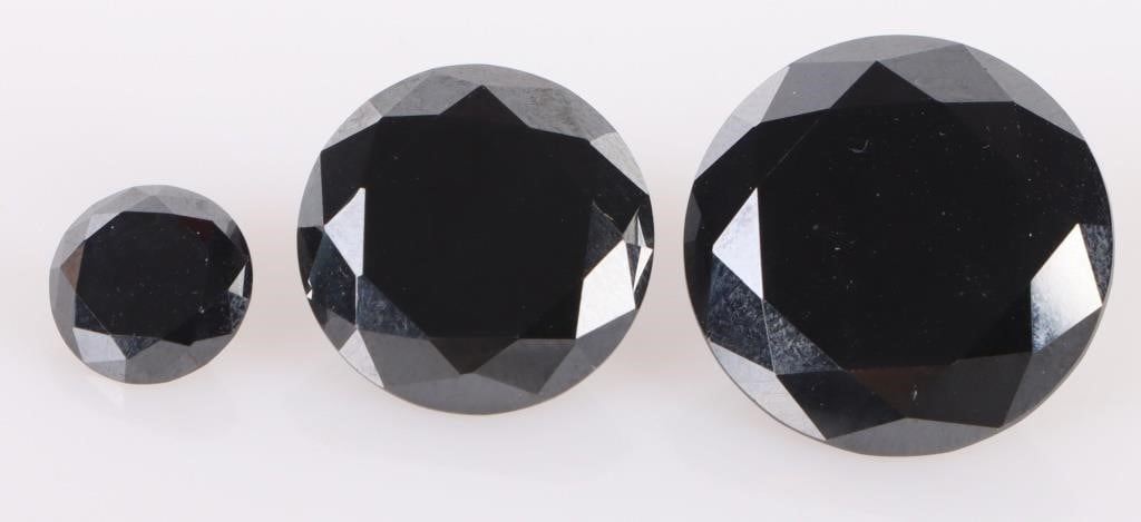 26.10CTW Round loose precious black diamonds to include one 15.55ct Large black black diamond, 8.80ct round diamond and one 1.90ct round black diamond.
