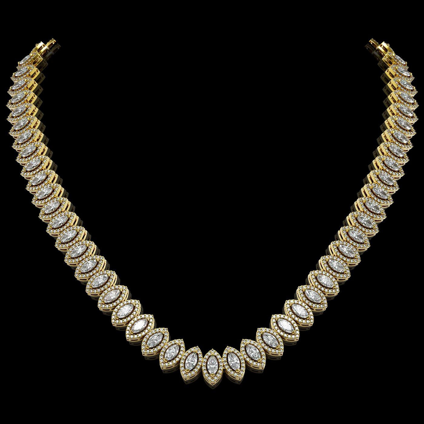 REF-2240A2N - SKU: 42958 ---- 26.11 ctw Marquise Cut Diamond Micro Pave Necklace 18K Yellow Gold