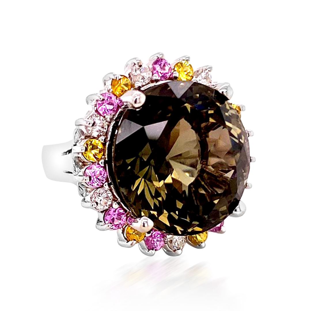 26.20ct Natural Bi Color Tourmaline, CEYLON Yellow Sapphire & CEYLON Pink Sapphire Ring