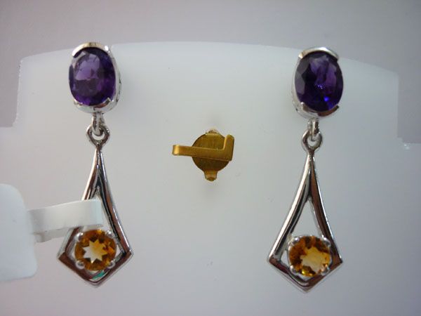 26.25 CTW AMETHYST AND CITRINE EARRING .925 STERLING SI **|**|** 26.25 CTW AMETHYST AND CITRINE EARRING .925 STERLING SILVER ; CITRINE 1.29 CTW; AMETHYST 2.93 CTW ; MSRP: $375