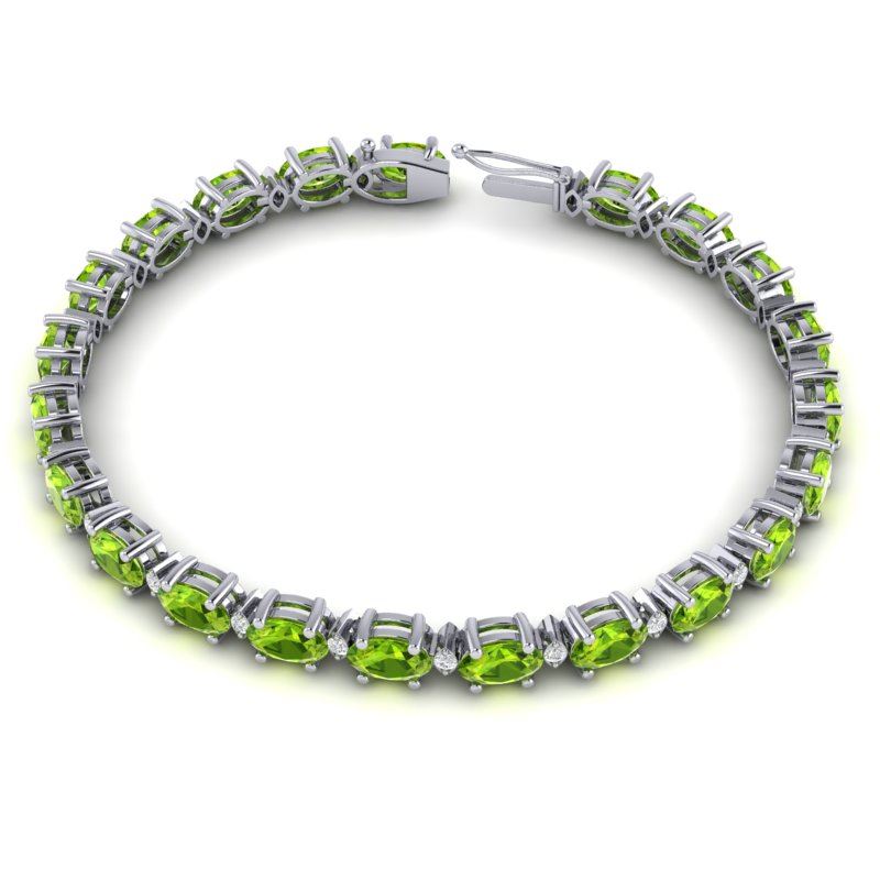26.3 CTW Peridot & VS/SI Certified Diamond Eternity Bracelet 10K White Gold ---- Luxury Designer Brand Bracelet Appraised Retail Price at $12,450 ---- SKU Number US29457 10k White gold Bracelet Size is 7 Inches, Bracelet measuring approx. 7 mm X 7 inches, weighing in total approx. 13 grams. Made in the USA and is stamped 10k, Main stone 25.50 carat total weight containing 16 pieces of Intense Green color with AAA quality Oval shape cut Peridot , Stone #2 0.8 carat total weight containing 17 Approx. pieces of H-I color with VS/SI quality Round shape cut
