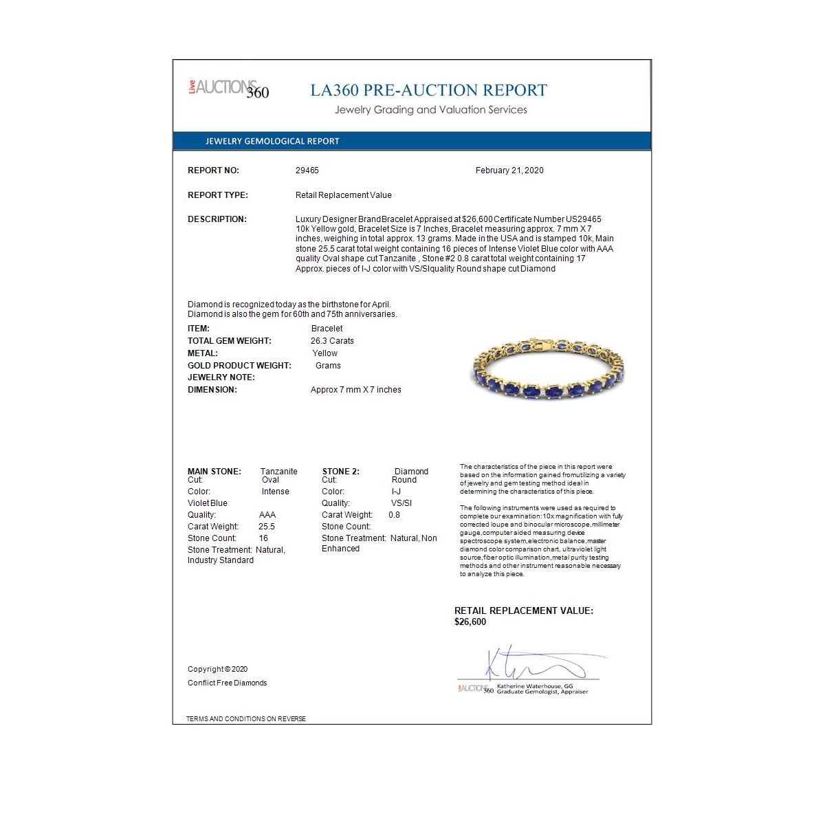 REF-345Y5X - SKU: 29465 ---- 26.3 ctw Tanzanite & VS/SI Diamond Eternity Bracelet 10k Yellow Gold