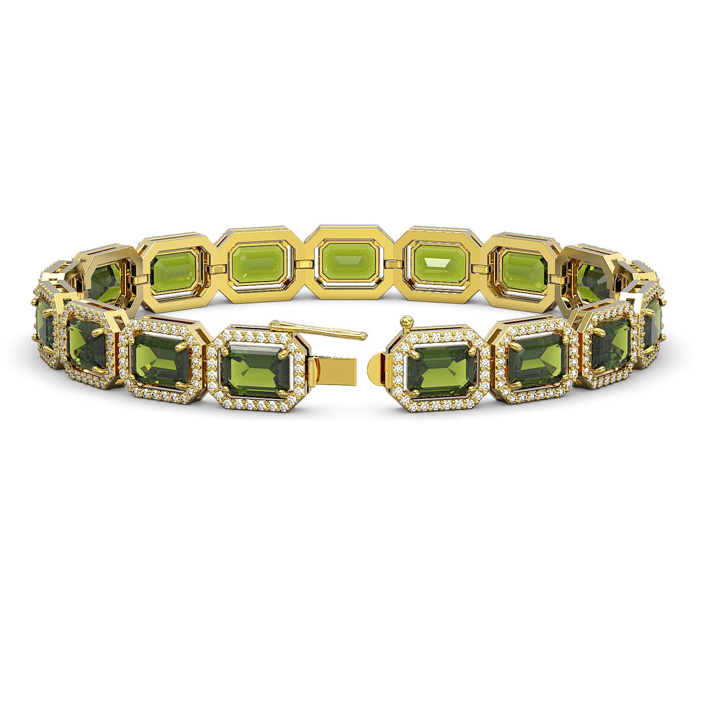 REF-436Y4X - SKU: 41401 ---- 26.38 ctw Tourmaline & Diamond Micro Pave Halo Bracelet 10k Yellow Gold