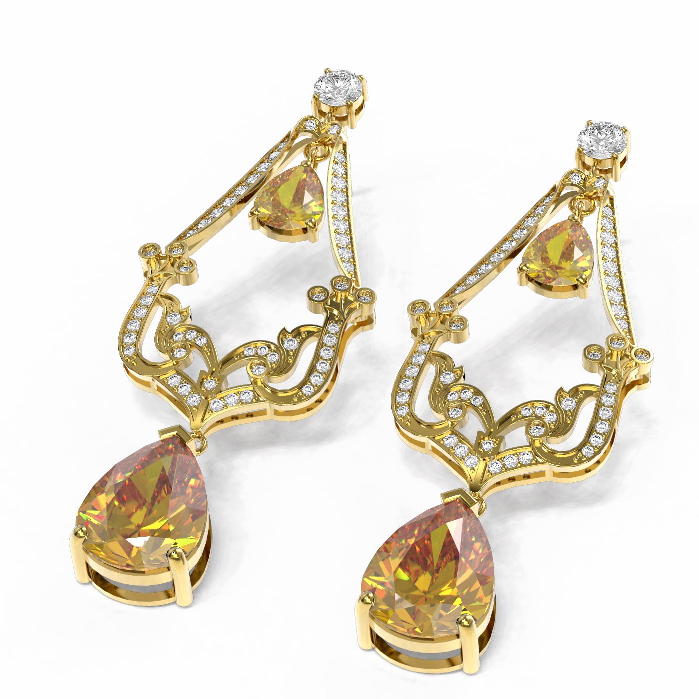 REF-533G5W - SKU: 53929 ---- 26.4 ctw Canary Citrine & Diamond Earrings 18K Yellow Gold