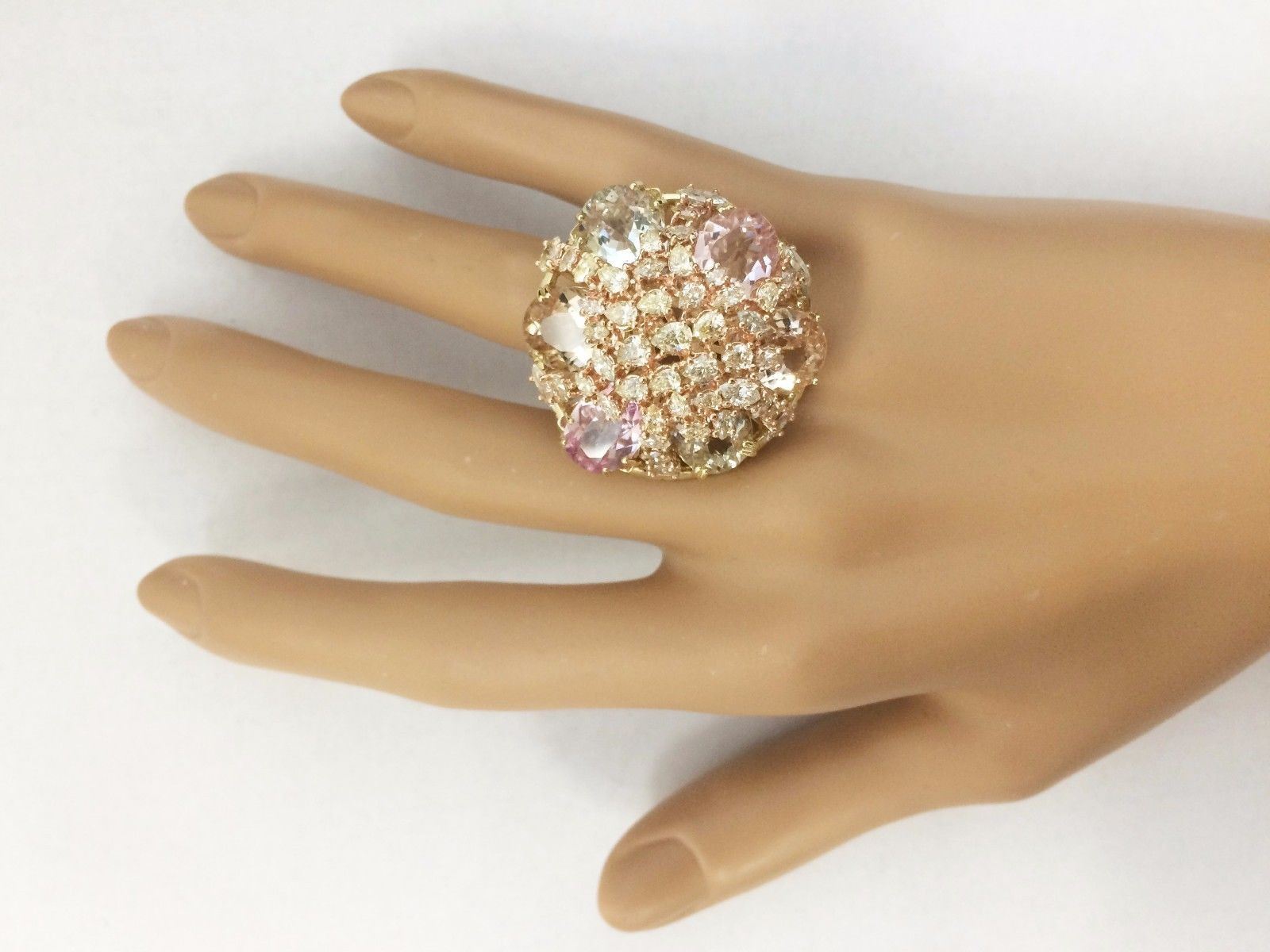26.40 CTW Natural Multi-stone And Diamond Ring In 14k Yellow Gold