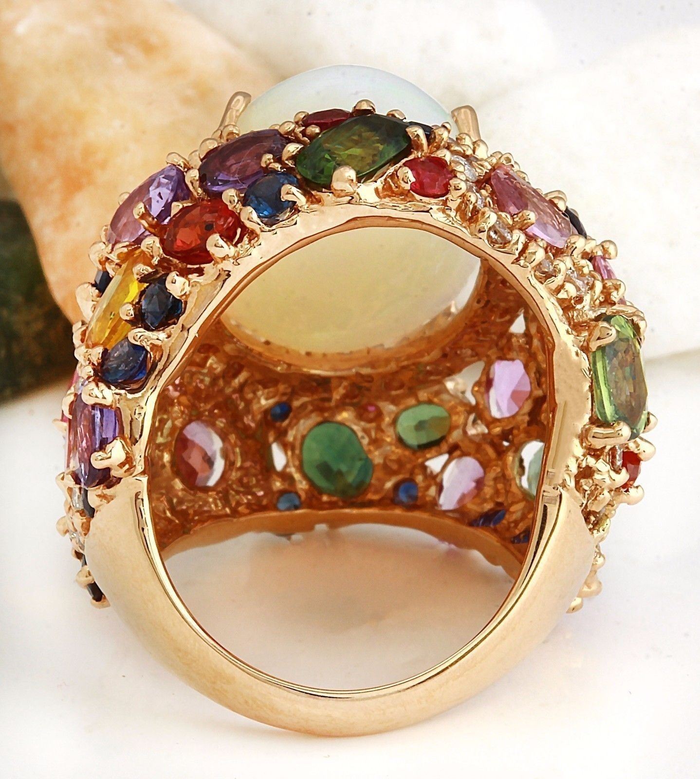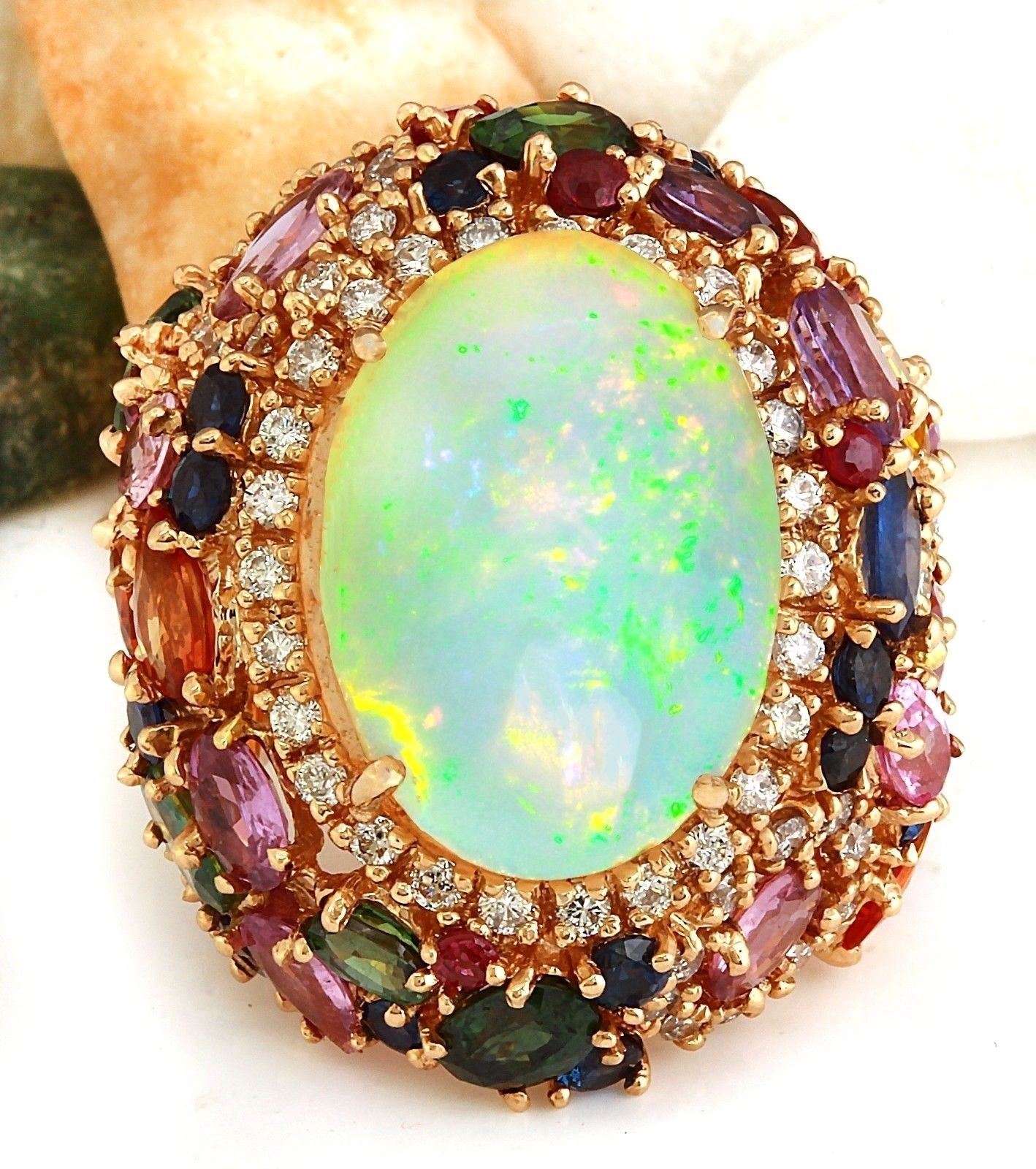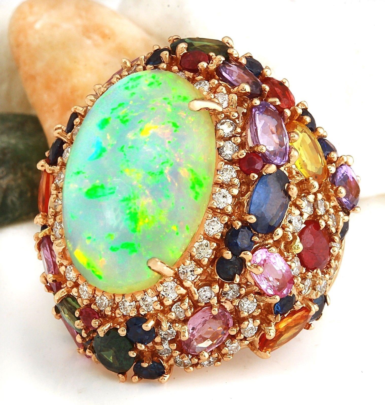 26.5 Carat Natural Opal, Sapphire 14K Solid Rose Gold Diamond Ring