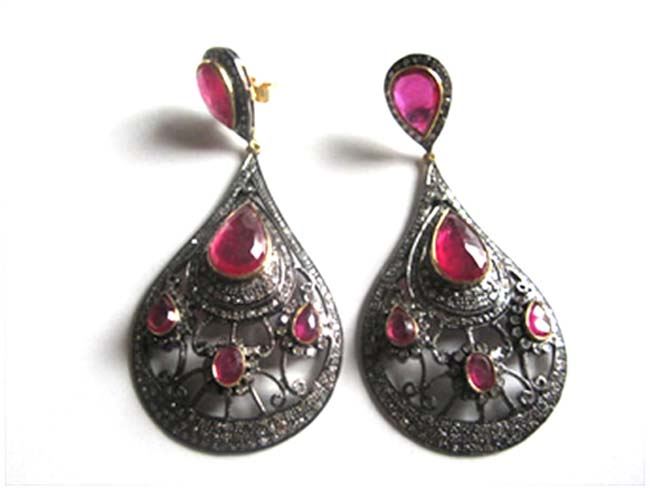 RUBY(GF) AND DIAMOND EARING/**/Diamond Count1:/Diamond 1 CTW:5.6/Diamond Color & Clarity:J-L/I1-I2 (Single Cut)/Diamond Count 2:/Diamond 2 CTW:/Diamond Color & Clarity:/Gemstone Count1:/Gemstone 1 CTW:20.95/Gemstone Count 2:/Gemstone 2 CTW:/Metal Type 1 Gold:14K GOLD/Gold Gram Weight:3.2/Metal Type 2:over 0.925 Sterling Silver /Silver Gram Weight:3.2/Gross Weight:27.69