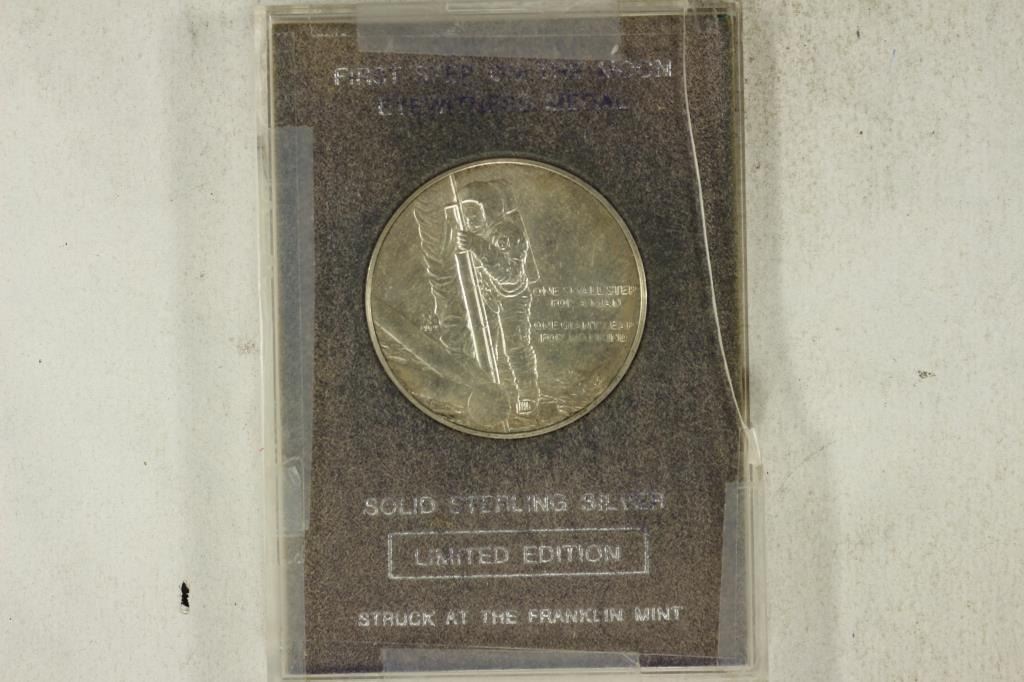 EDITION 1ST STEP ON THE MOON PROOF MEDAL IN CASE WHICH IS CRACKED, STRUCK AT THE FRANKLIN MINT