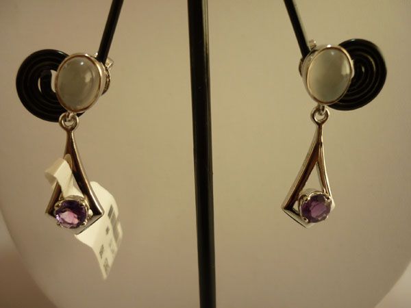 26.75 CTW AMETHYST AND MOON STONE EARRING .925 STERLING **|**|** 26.75 CTW AMETHYST AND MOON STONE EARRING .925 STERLING SILVER AMETHYST WEIGHT 0.79 CTW MOON STONE WEIGHT 3.29 CTW ; MSRP: $225