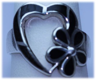 26.80 CTW BLACK ONEX HEART RING .925 STERLING SILVER **|**|** 26.80 CTW BLACK ONEX HEART RING .925 STERLING SILVER ; MSRP: $200