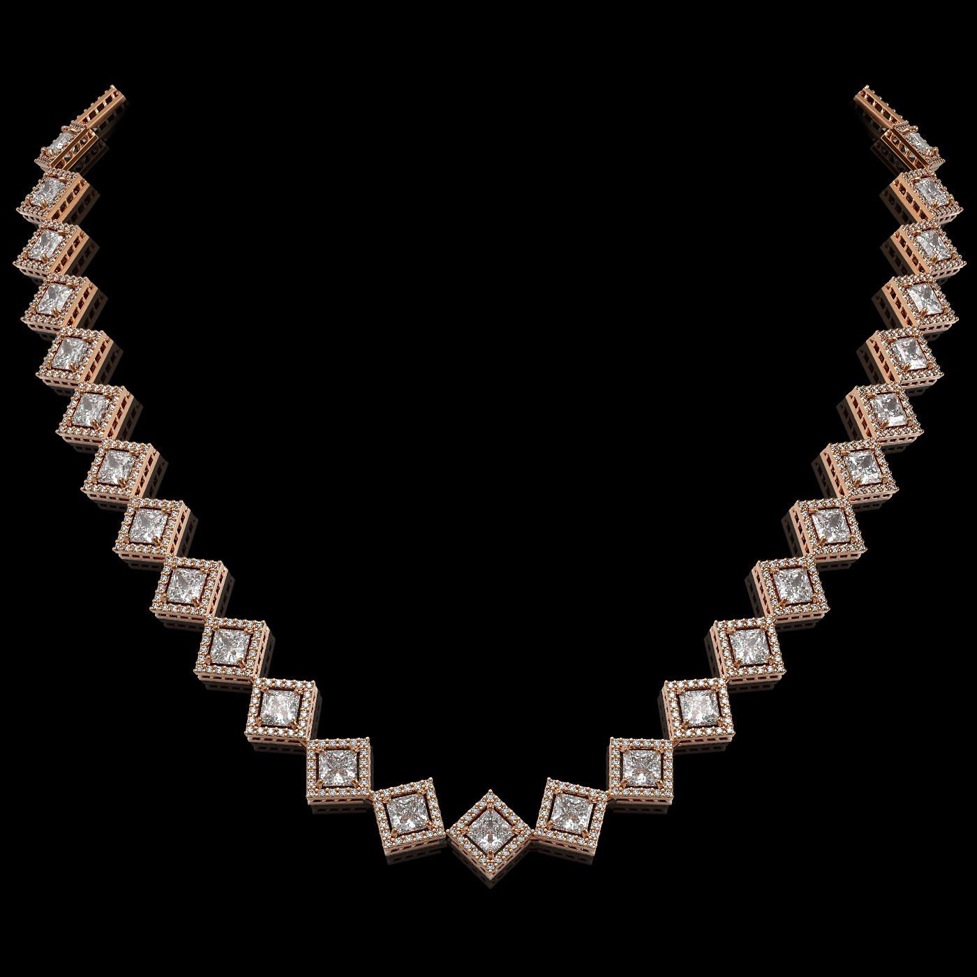 REF-4912N2Y -42795 ---- 26.88 CTW Princess Cut Diamond Designer Necklace 18K Rose Gold ---- Luxury Designer Brand Necklace Appraised at $216,150 Certificate Number US42795 18K Rose gold, Necklace Size is 16 Inches, Necklace measuring approx. 8 mm x 16 Inches, weighing in total approx. 45 grams. Made in the USA and is stamped 18K, Main stone 20.16 carat total weight containing 42 pieces of I-J color with VS/SI quality Princess shape cut Diamond , Stone #2 6.72 carat total weight containing 840 pieces of G-H color with VS/SI quality Round shape cut Diamond