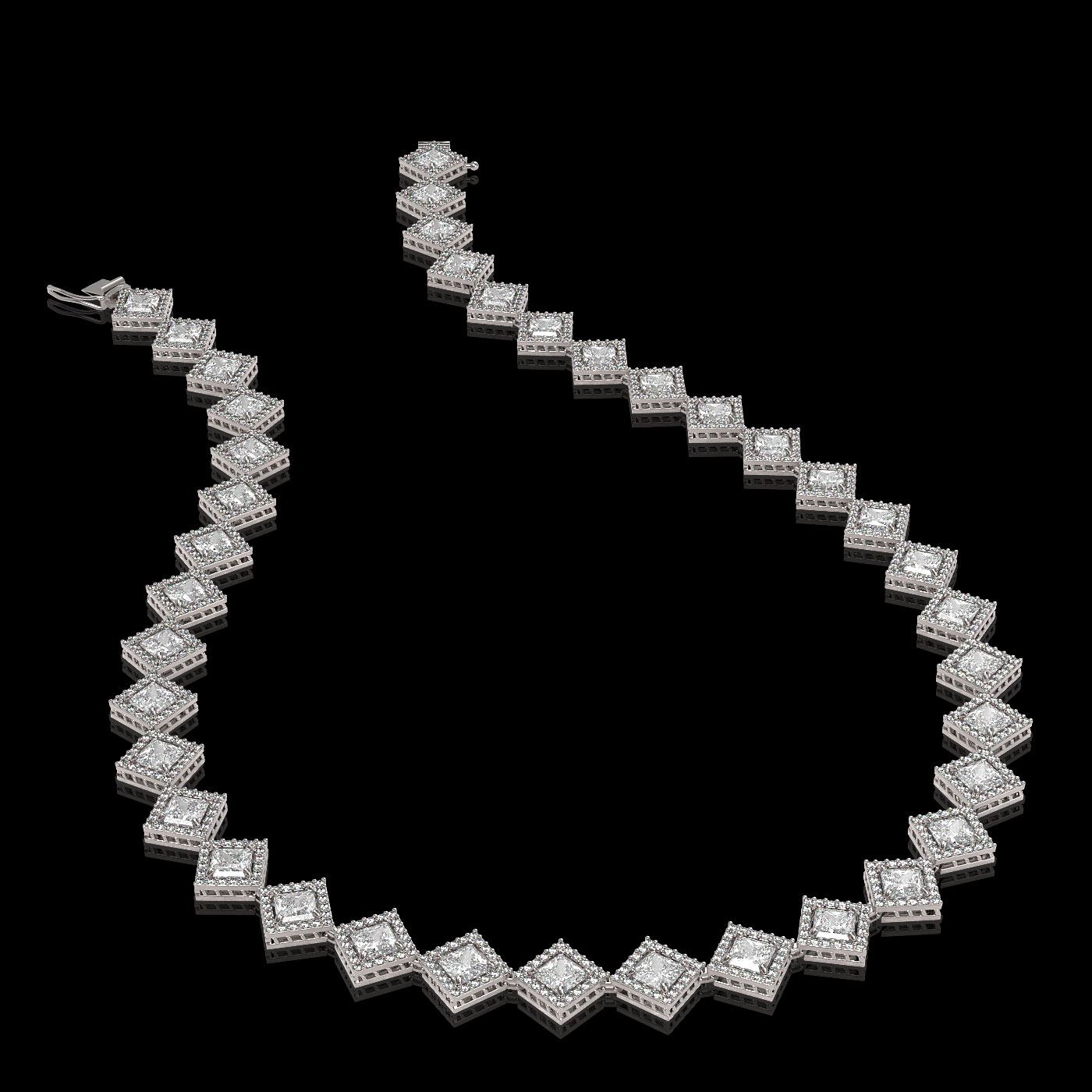REF-4912W2F -42794 ---- 26.88 CTW Princess Cut Diamond Designer Necklace 18K White Gold ---- Luxury Designer Brand Necklace Appraised at $216,150 Certificate Number US42794 18K White gold, Necklace Size is 16 Inches, Necklace measuring approx. 8 mm x 16 Inches, weighing in total approx. 45 grams. Made in the USA and is stamped 18K, Main stone 20.16 carat total weight containing 42 pieces of I-J color with VS/SI quality Princess shape cut Diamond , Stone #2 6.72 carat total weight containing 840 pieces of G-H color with VS/SI quality Round shape cut Diamond