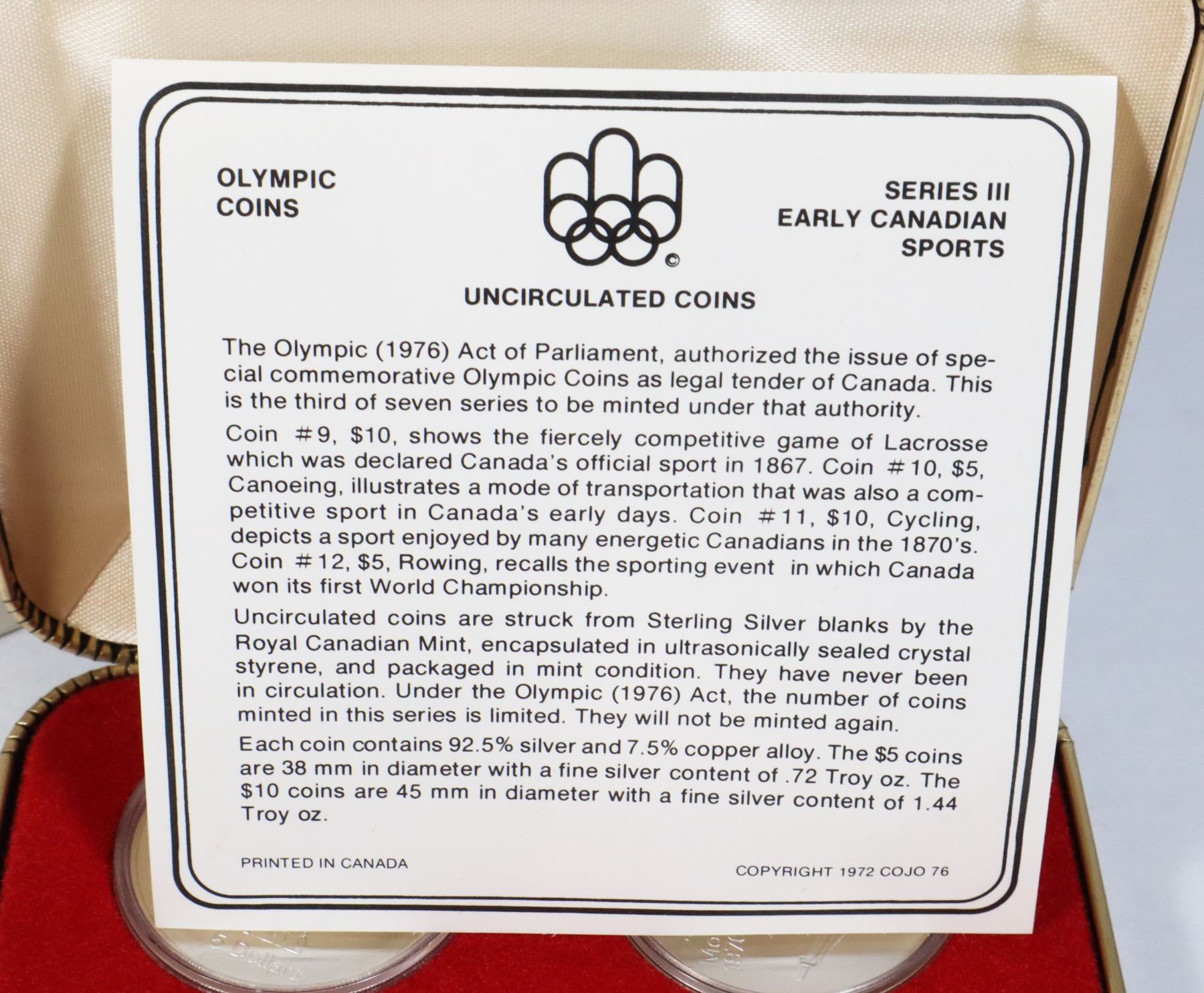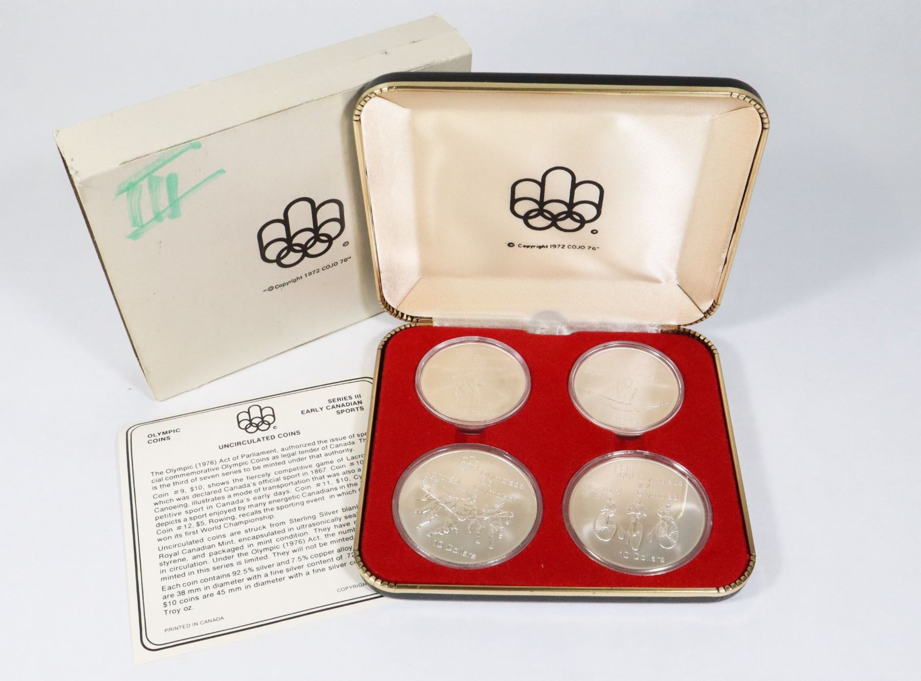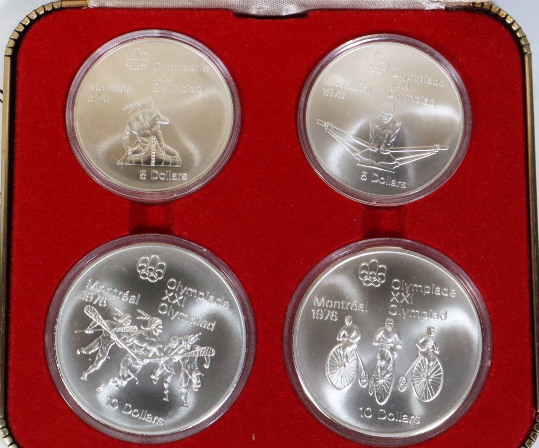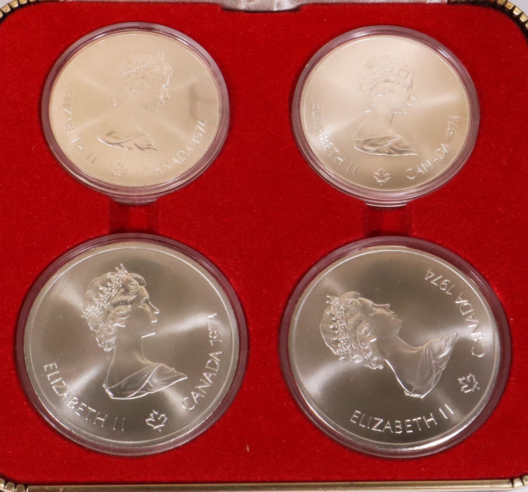 SET 4 COINS $5 + $10 COINS CASED EARLY CANADA SPORTS