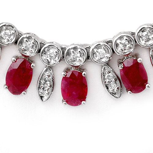 REF-857A8X -11716 ---- 26 CTW Ruby & Diamond Necklace 18K White Gold ---- Luxury Designer Brand Necklace Appraised at $61,350 Certificate Number US11716 18k White gold, Necklace Size is 16 Incehs, Necklace measuring approx. 17" x 5/16", weighing in total approx. 60 grams. Made in the USA and is stamped 18k, Main stone 22 carat total weight containing 57 pieces of Mid-Opaque-Deep Red color with AAA quality Oval shape cut Ruby , Stone #2 4 carat total weight containing 222 pieces of H-I color with VS/SI quality Round shape cut Diamond