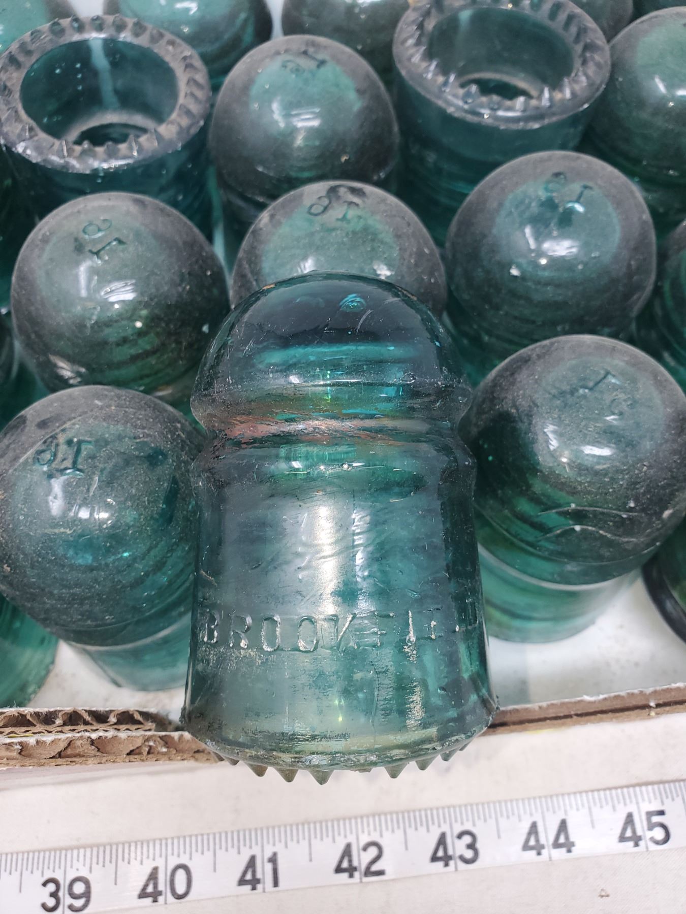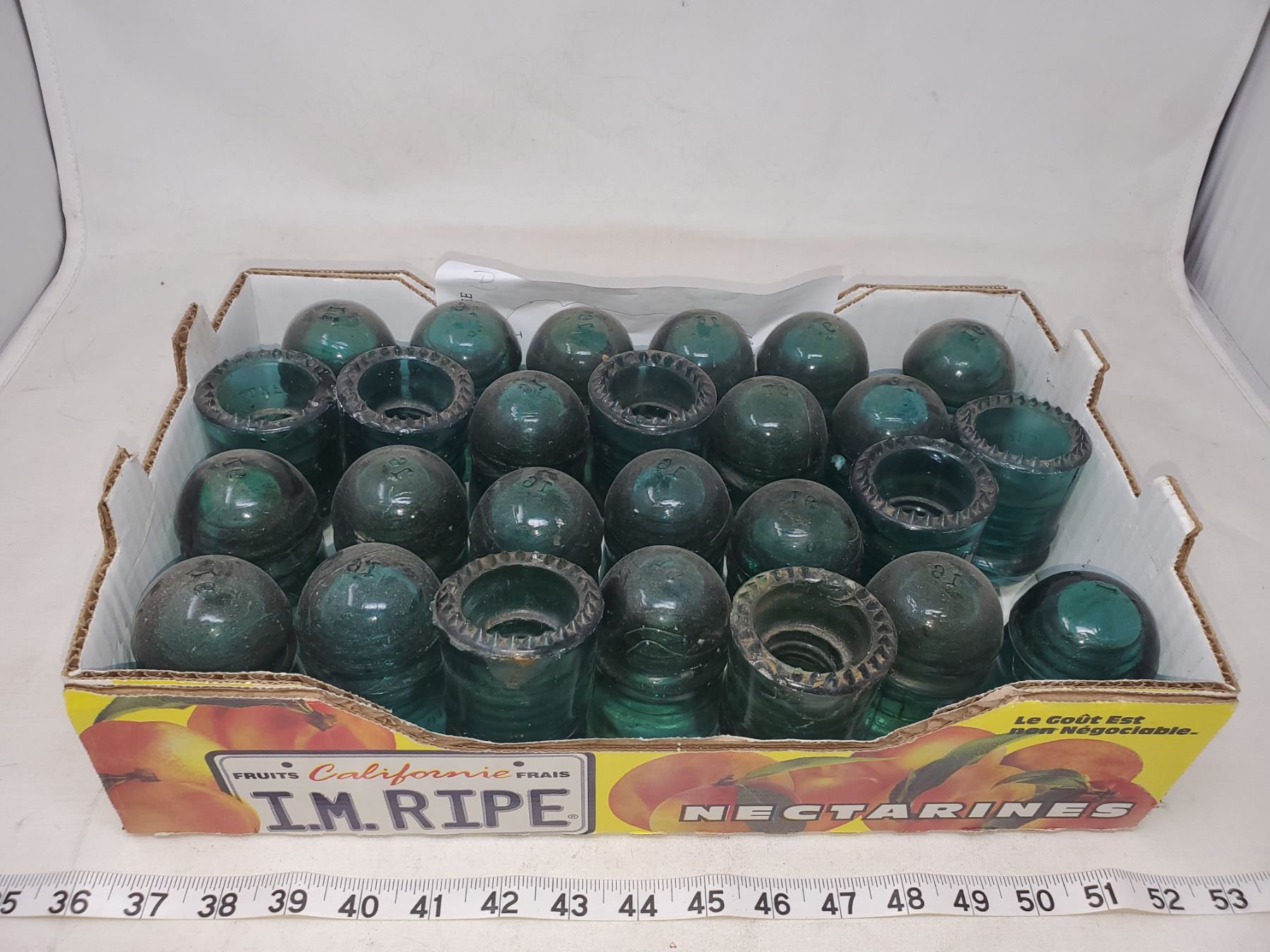 26 GREEN GLASS INSULATORS 'BROOKFIELD'