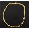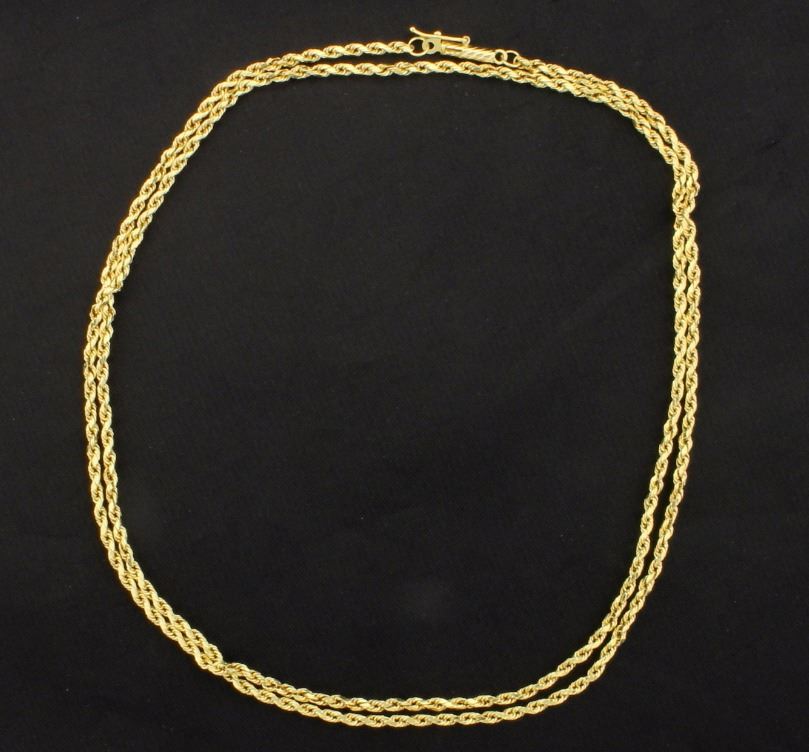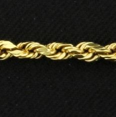 14K yellow gold, it is 1.8mm thick and has a safety clasp. 3.6g