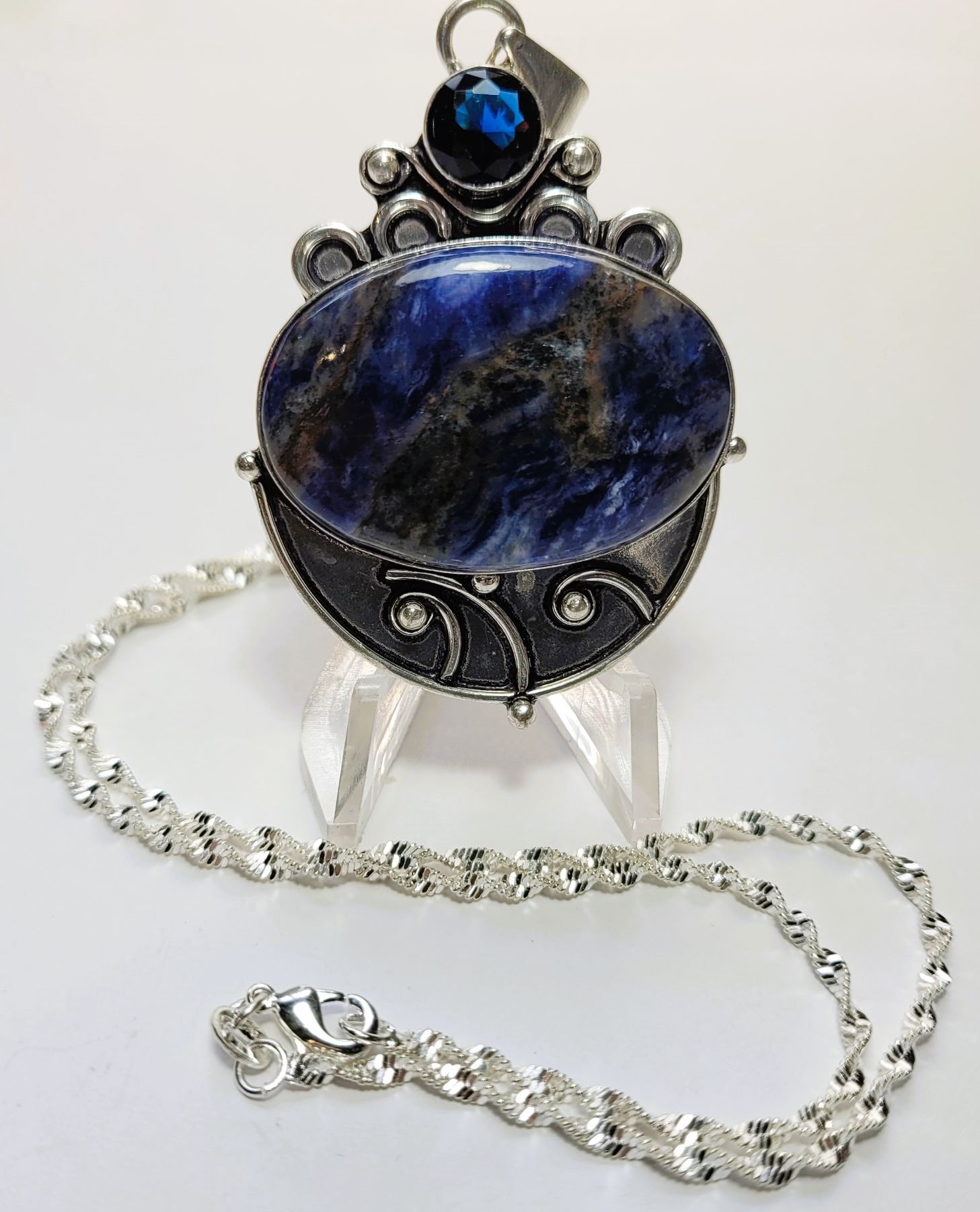 ACCENT STONE, SET IN 925 STAMPED SILVER PLATE ON 18" HEAVY WAVE CHAIN. JEWELLERY