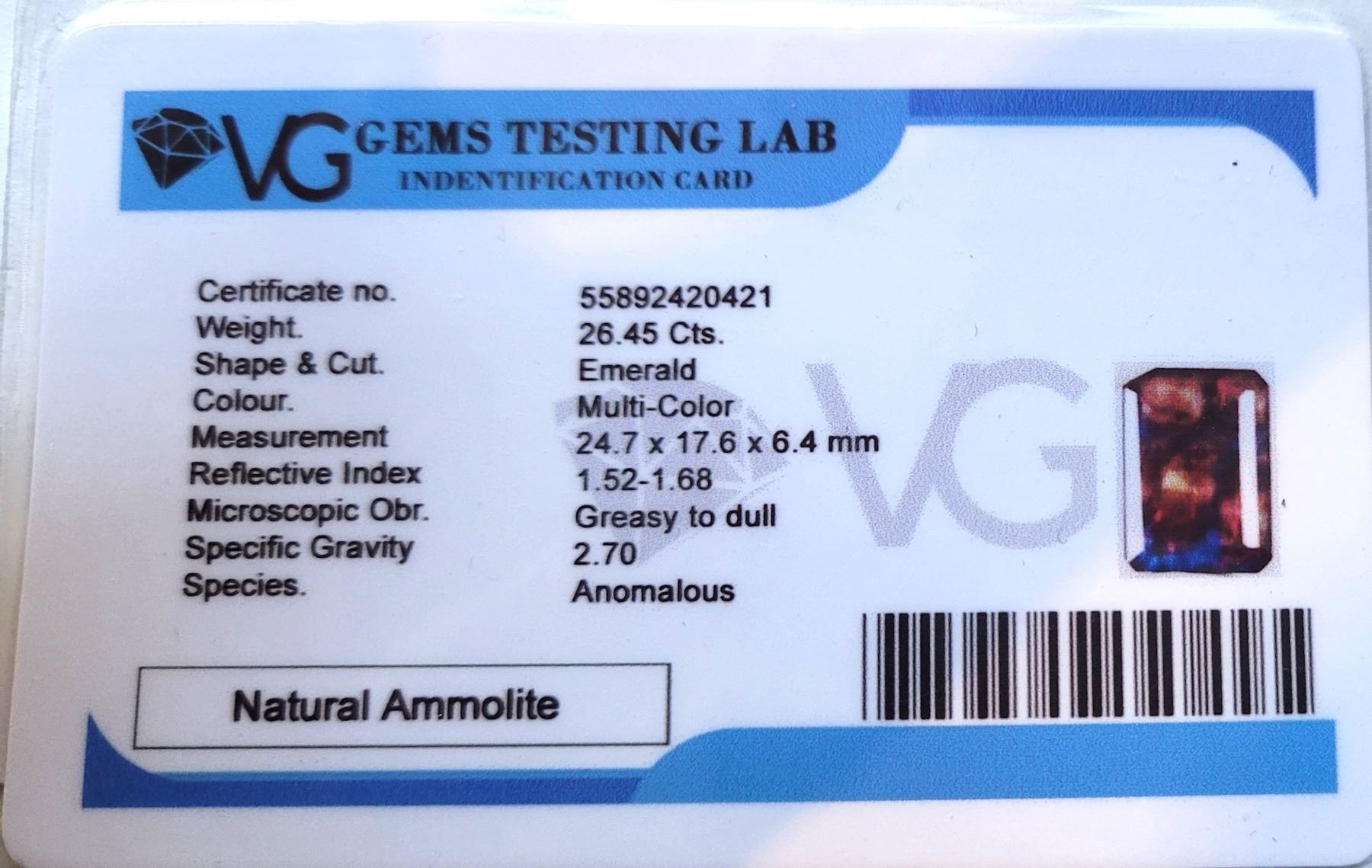 GEMSTONE, 26.45 CT, READY FOR SETTING, C/W INFO CARD. JEWELERY
