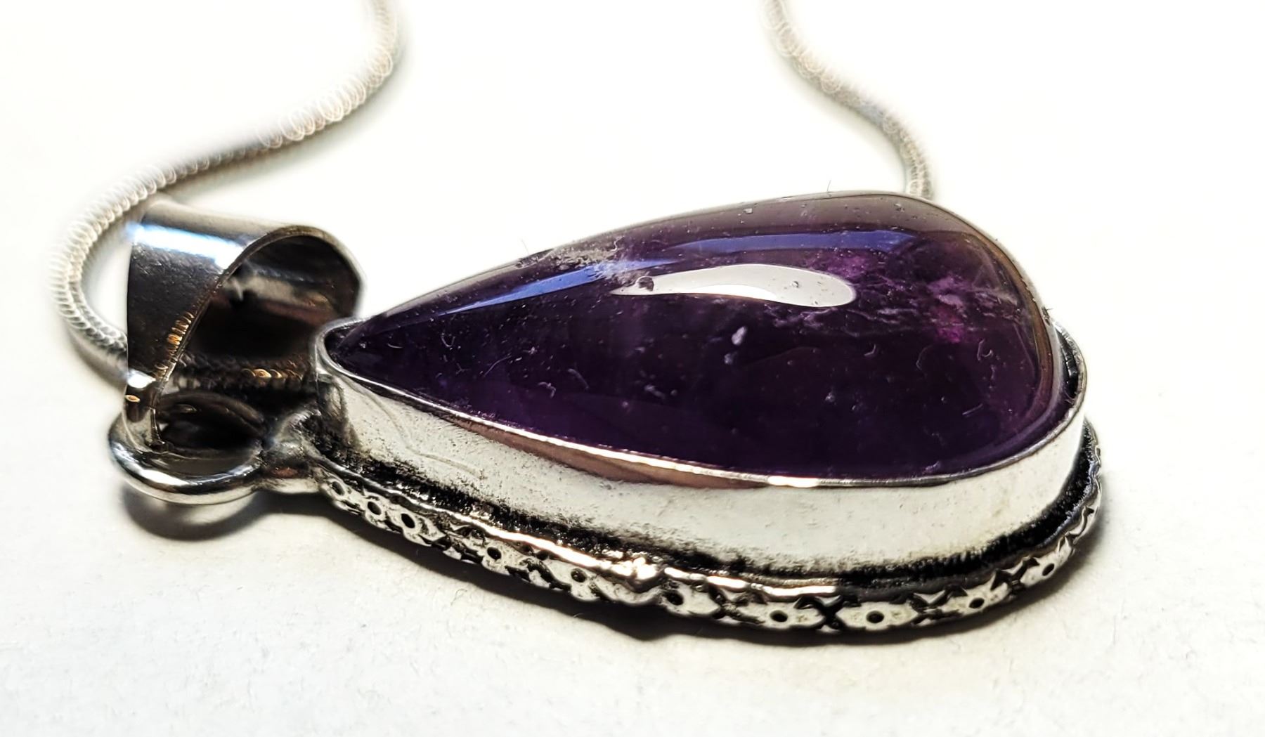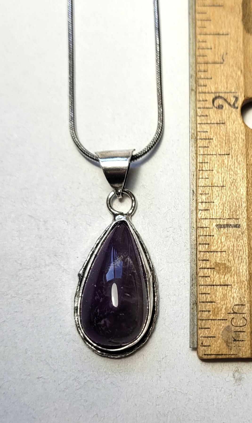 PURPLE AMETHYST PENDANT ON 16: SNAKE CHAIN. JEWELERY