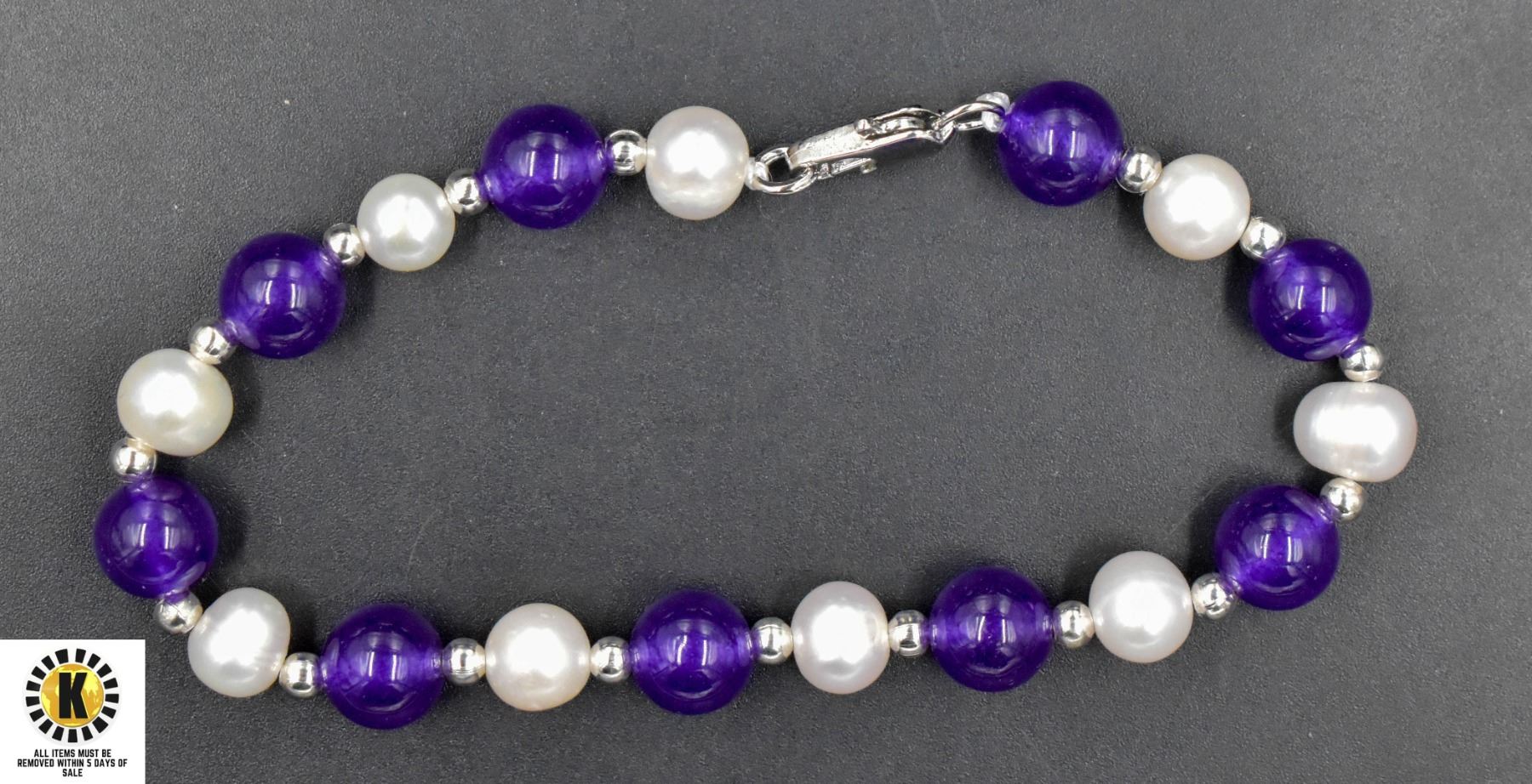 #26-NATURAL PURPLE AMETHYST ,FRESH WATER BRACELET