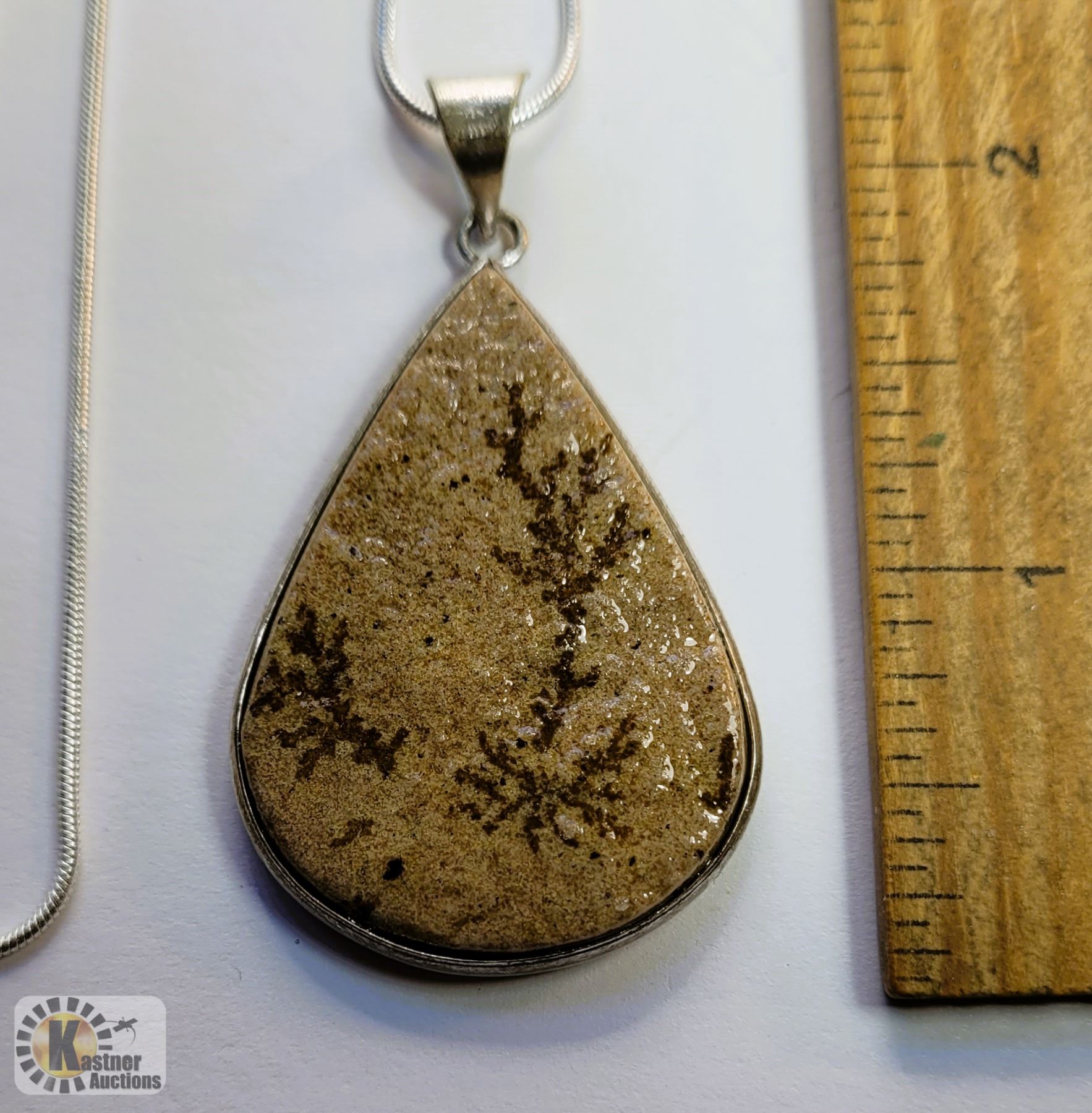 PENDANT ON 18" SNAKE CHAIN STAMPED 925 SILVER PLATE. JEWELLERY