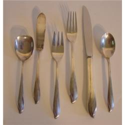 26 PIECES OF CENTURY STERLING FLATWARE in the Torchlight pattern. Marked on reverse of handles. Consists of 6 dinner forks, 6 salad forks, one butter spread, one oblong bowl serving spoon, 6 dinner knives, 6 tea spoons. Not monogrammed. Includes single drawer flatware chest.