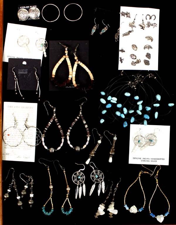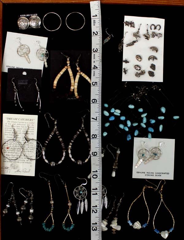 26 Pr of Pierced Earrings. We have various stones including Turquoise and Amber,. The longest of these measures 3''.