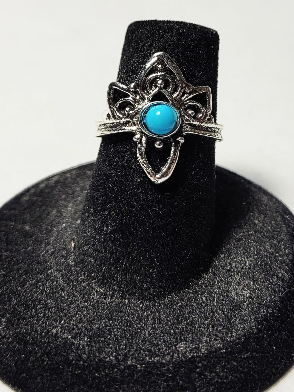26) SILVER TONE, BEZEL SET ROUND TURQUOISE