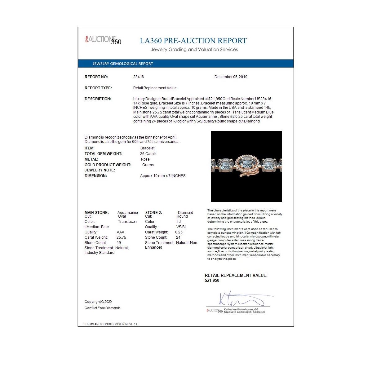 REF-285W3H - SKU: 23416 ---- 26 ctw Aquamarine & VS/SI Diamond Eternity Micro Bracelet 14k Rose Gold