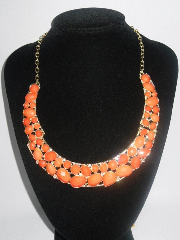 260CTW 3-SLABS ORANGE CLEOPATRA CZ BRASS NECKLACE;18INC **|**|** 260CTW 3-SLABS ORANGE CLEOPATRA CZ BRASS NECKLACE;18INCH ; MSRP: $200