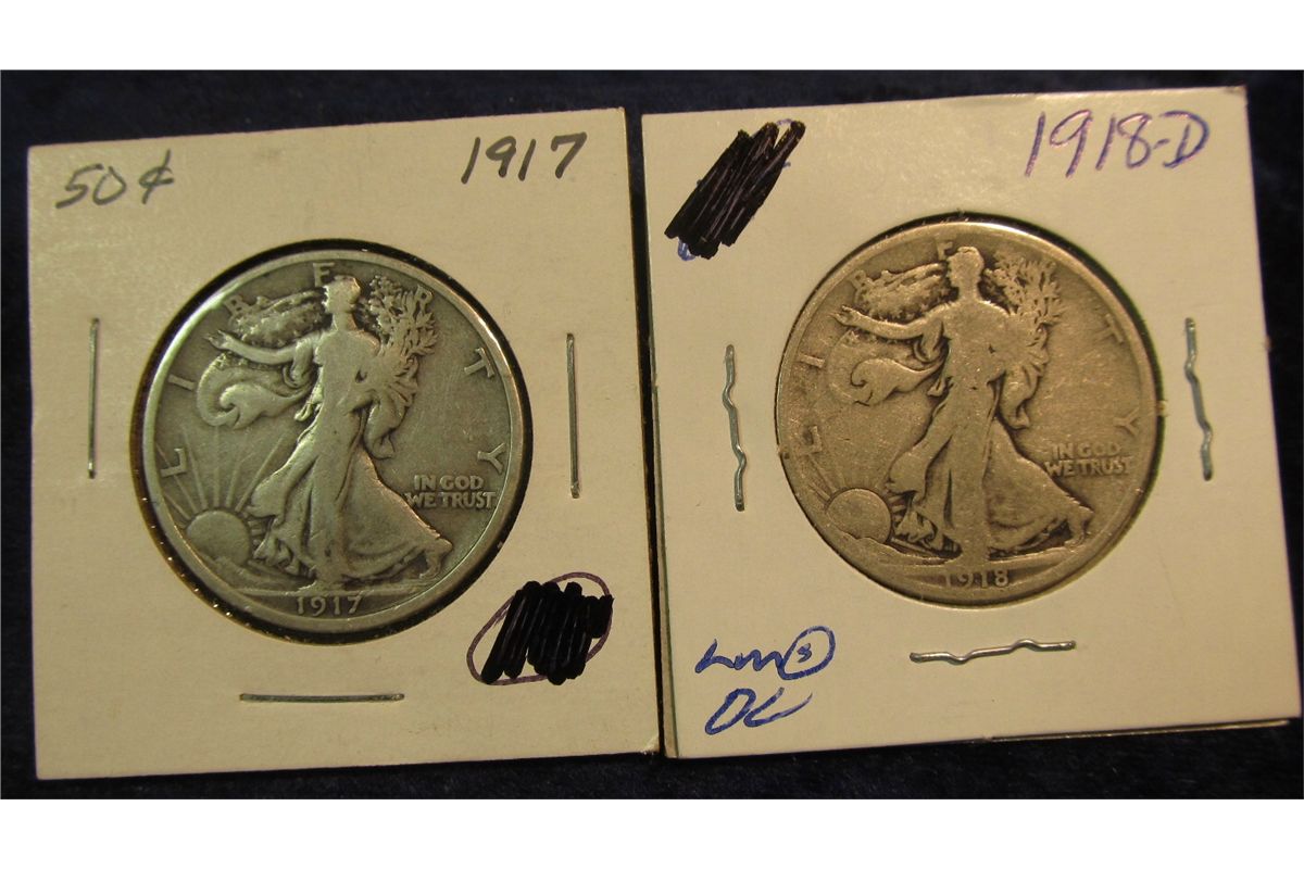 261. 1917 P VG & 18 D G-4 Walking Liberty Half Dollars. Redbook value $30.00.