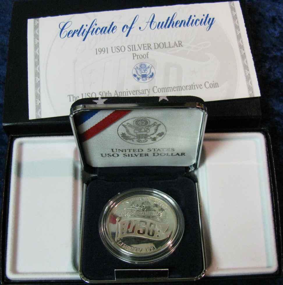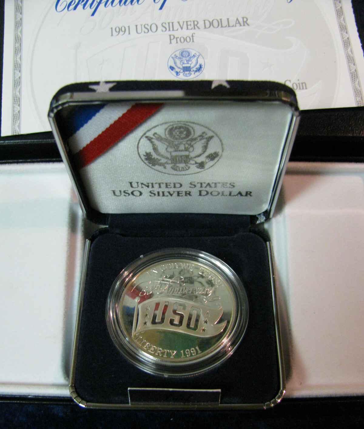 261. 1991 S USO Silver Dollar Proof in original box of issue.