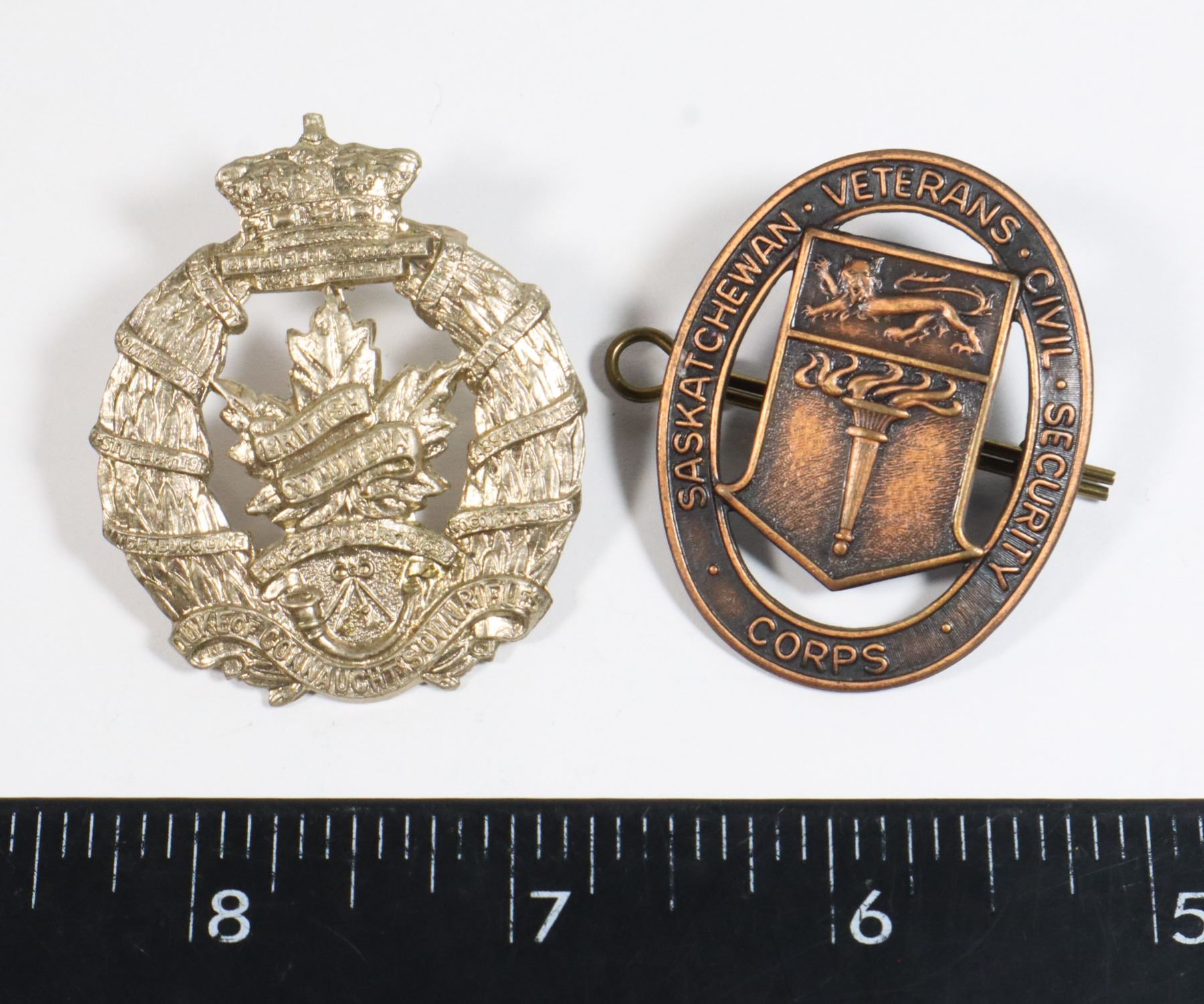 BRITISH COLUMBIA REGIMENT SASKATCHEWAN VETERANS CIVIL SECURITY CORPS WORLD WAR TWO CANADA CANADIAN ALLIED FORCES SHOULDER TITLE INSIGNIA