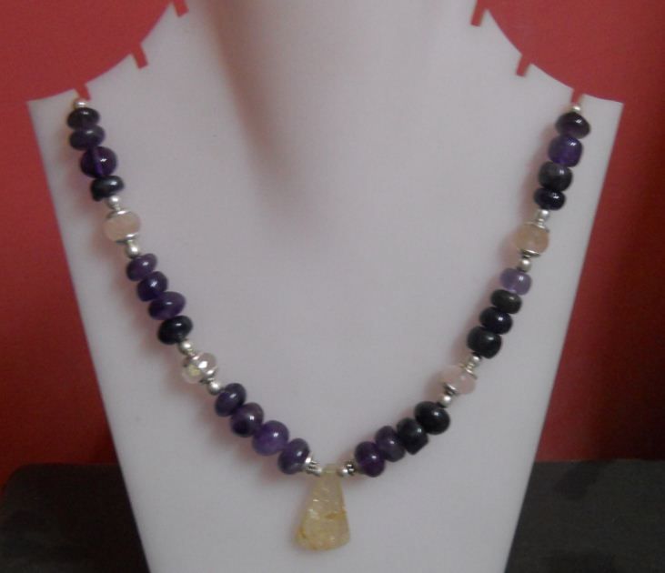 261.40 Ct Necklace of Amethyst and Rose Quartz