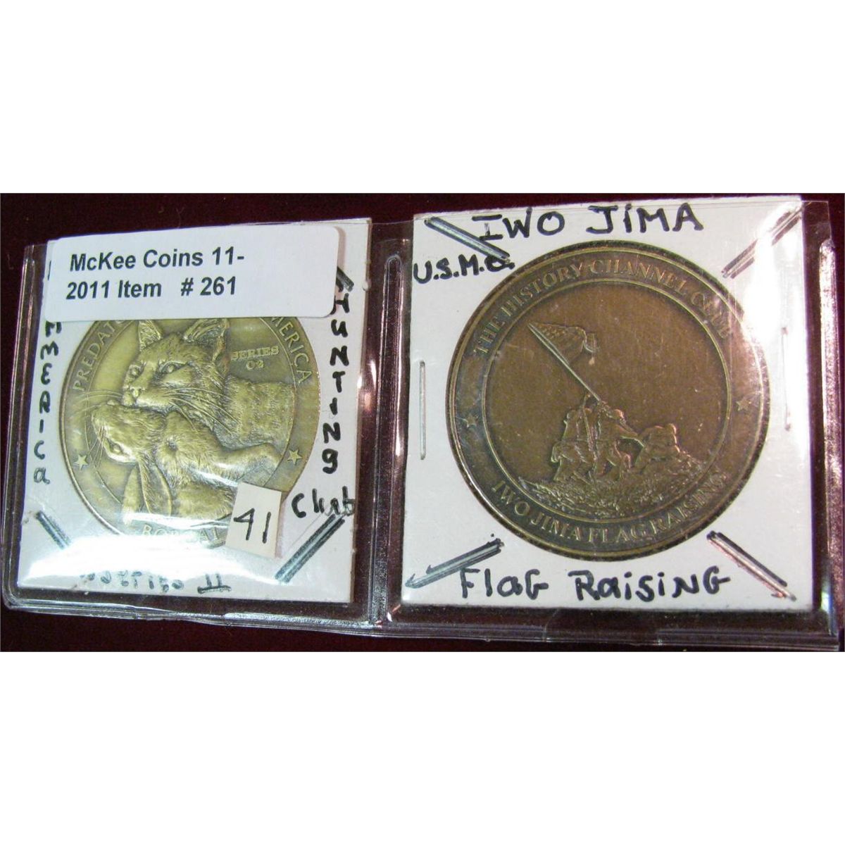 261. Bobcat Predators of North America & Iwo Jima Flag raising Medals.