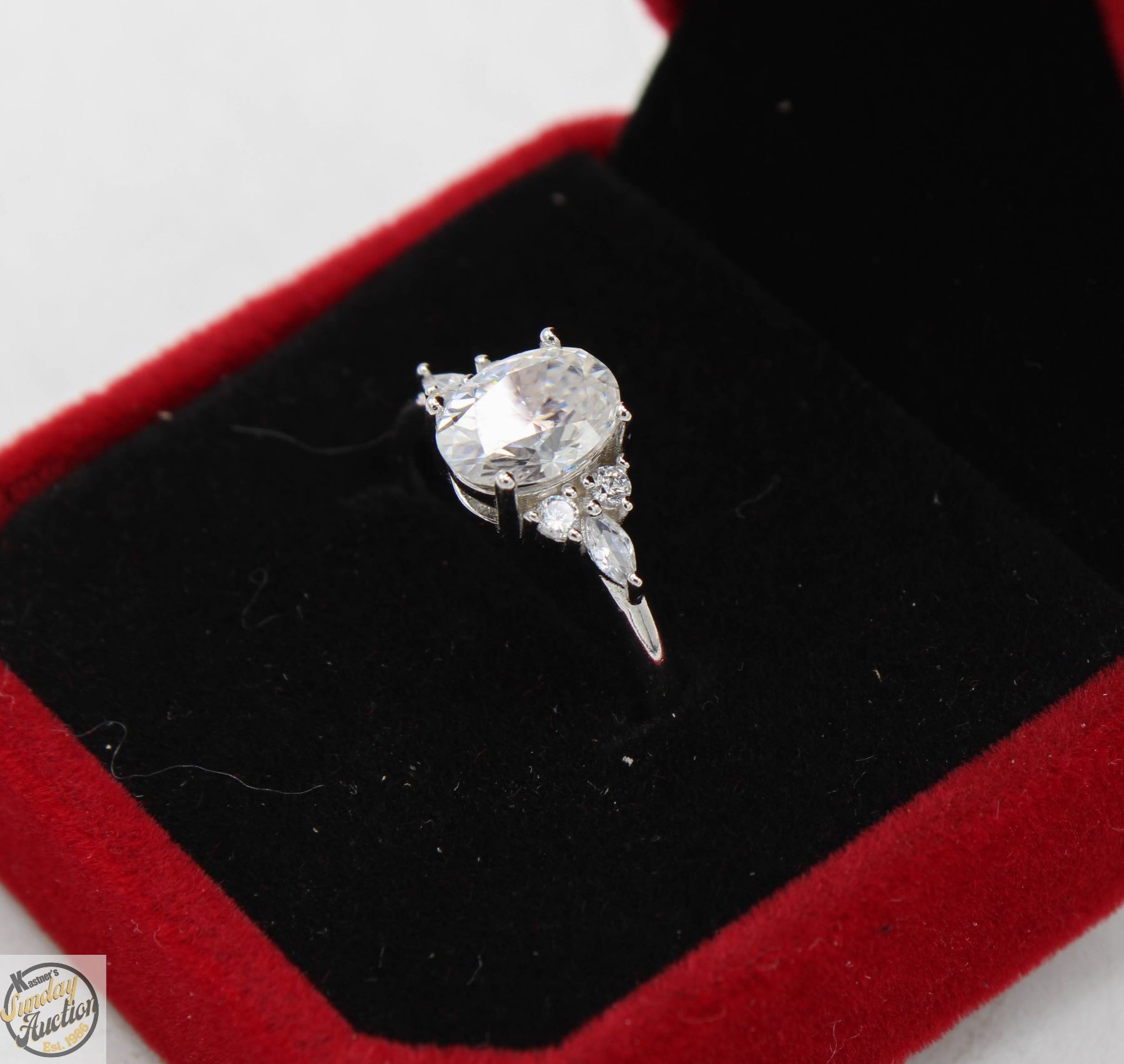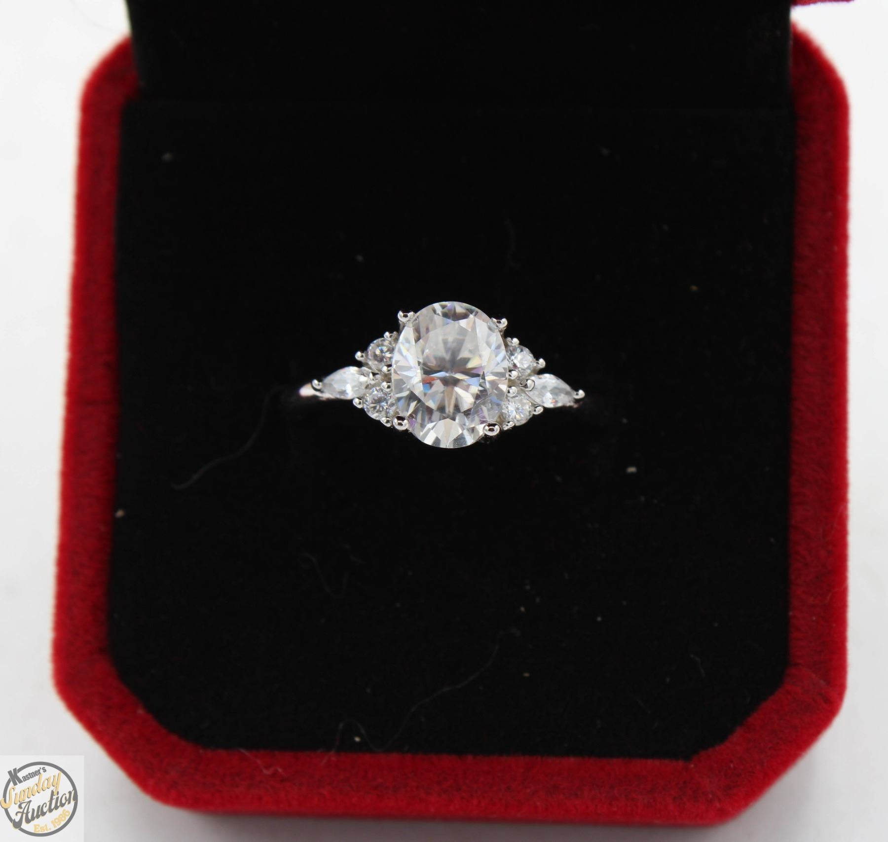 STONE VVS D COLOR SET WITH 4 ROUND BRILLIANT CUT CUBIC ZIRCONIA AND 2 MARQUISE SHAPED CZS SET IN 925 SILVER RING SIZE 8 RETAIL VALUE $925.00 **ALL ITEMS MUST BE REMOVED BY 5PM SATURDAY, MAY 31ST 2025. ALL REMAINING ITEMS WILL BE SUBJECT TO A $6.00 PER DAY STORAGE CHARGE. ANY ITEMS REMAINING AFTER MONDAY, JUNE 16TH 2025 WILL BE CONSIDERED FORFEITED. NO REFUNDS WILL BE ISSUED FOR FORFEITED ITEMS. TO SCHEDULE A PICK UP APPOINTMENT CLICK HERE