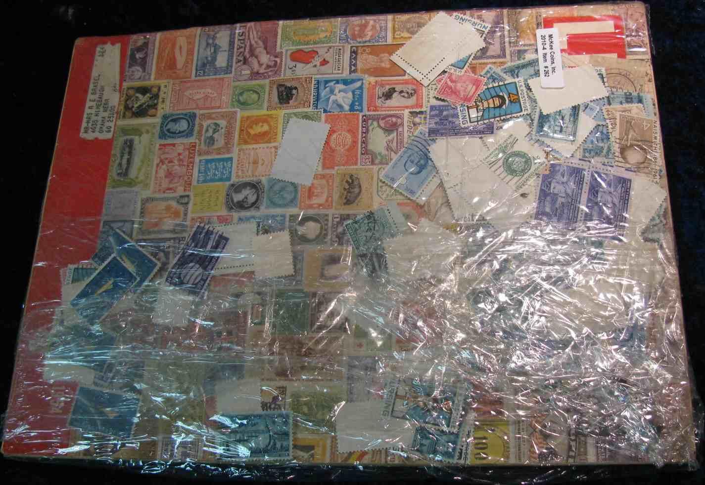 262. May 3, 1954 Edition of "Life" Magazine with cover illustrating hundreds of postage stamps. Also, included is a large hoard of cancelled postage stamps.