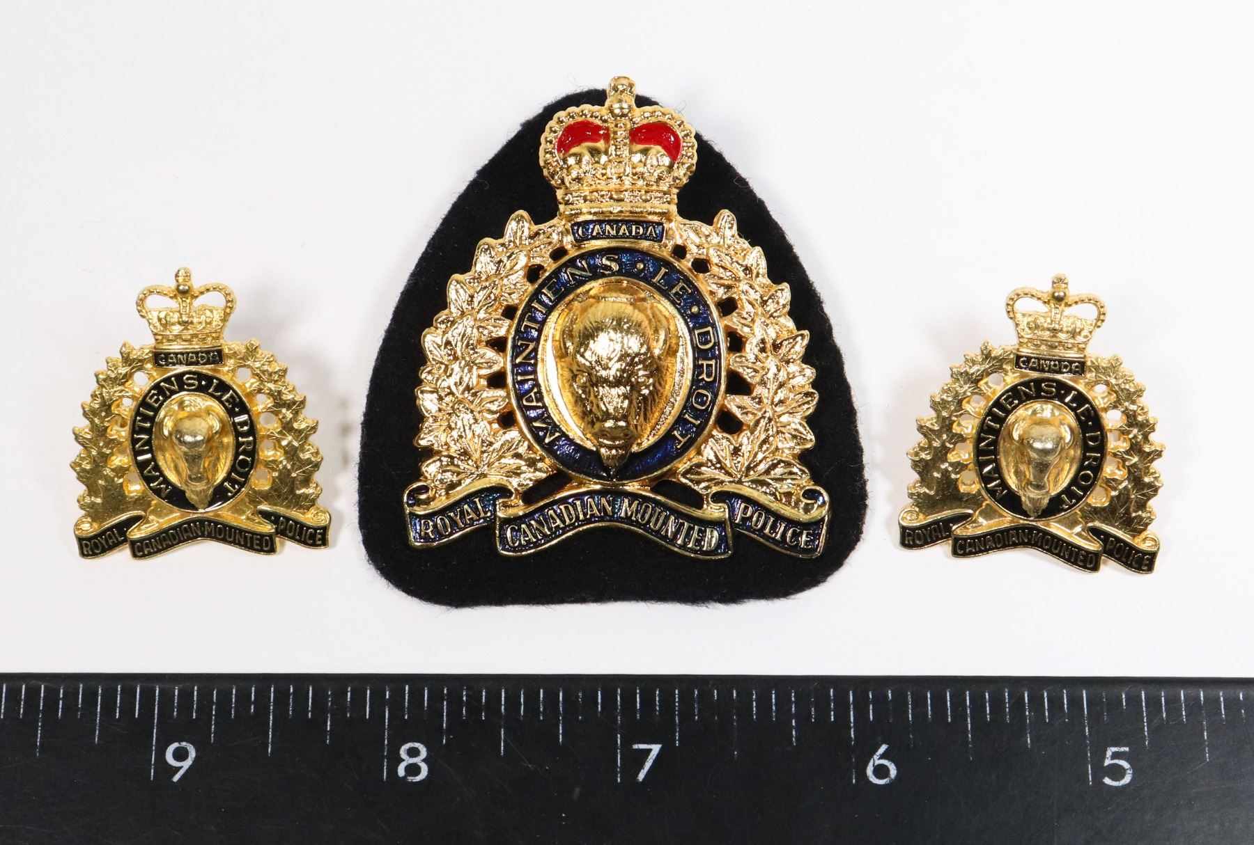 INCLUDES CAP BADGE AND EARLIER COLLAR BADGES QEII QUEEN ELIZABETH II ROYAL CANADIAN MOUNTED POLICE CANADA LAW ENFORCEMENT