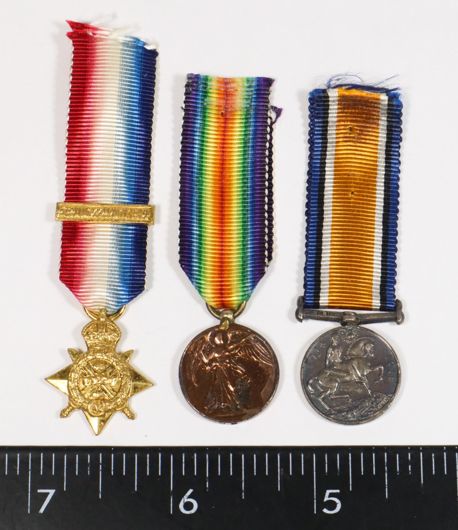 MINI MEDAL SET OF 3 1914 1918 WAR MEDAL VICTORY MEDAL 1914 MONS STAR WORLD WAR ONE