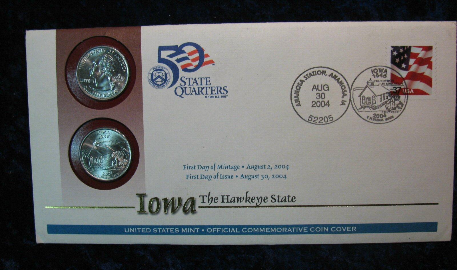 263. U.S. Mint "Iowa The Hawkeye State" Official Commemorative Coin Cover complete with P & D Quarters.