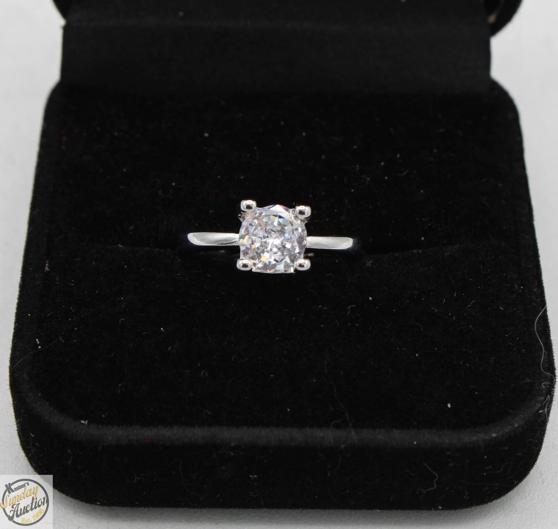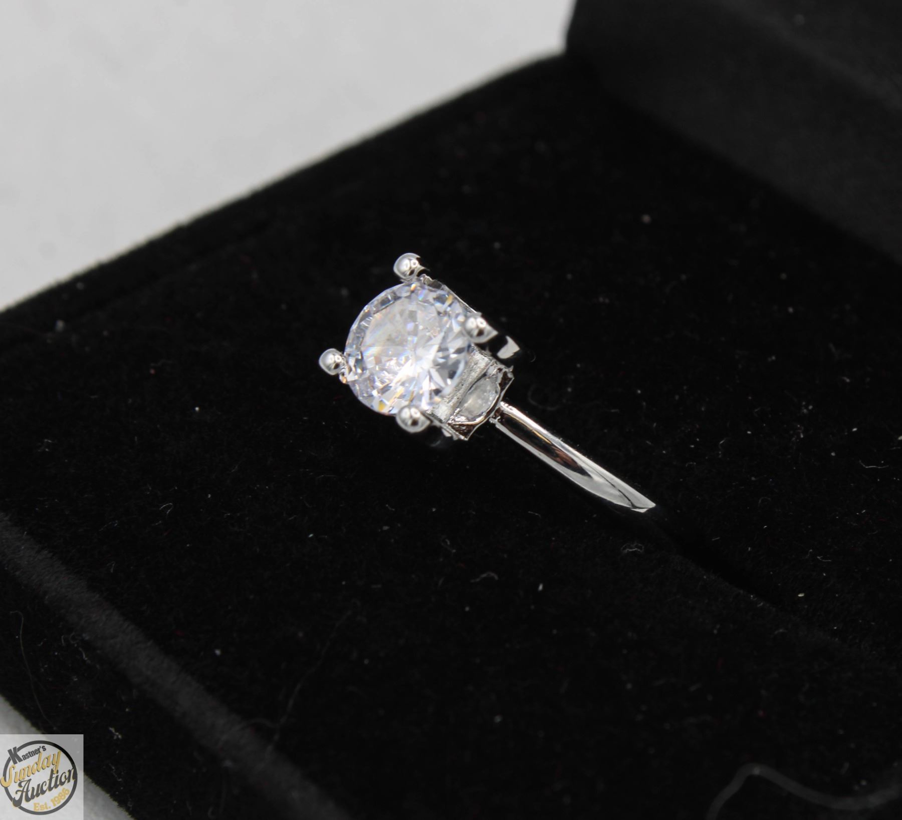 ZIRCONIA SET IN 4 CLAW HEAD SET IN 925 SILVER RING SIZE ADJUSTABLE IN VELVET RING BOX **ALL ITEMS MUST BE REMOVED BY 5PM SATURDAY, MAY 31ST 2025. ALL REMAINING ITEMS WILL BE SUBJECT TO A $6.00 PER DAY STORAGE CHARGE. ANY ITEMS REMAINING AFTER MONDAY, JUNE 16TH 2025 WILL BE CONSIDERED FORFEITED. NO REFUNDS WILL BE ISSUED FOR FORFEITED ITEMS. TO SCHEDULE A PICK UP APPOINTMENT CLICK HERE
