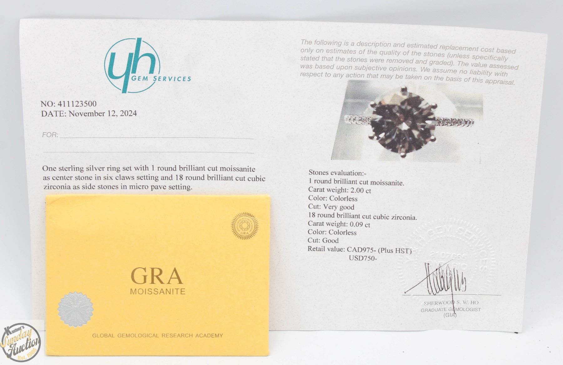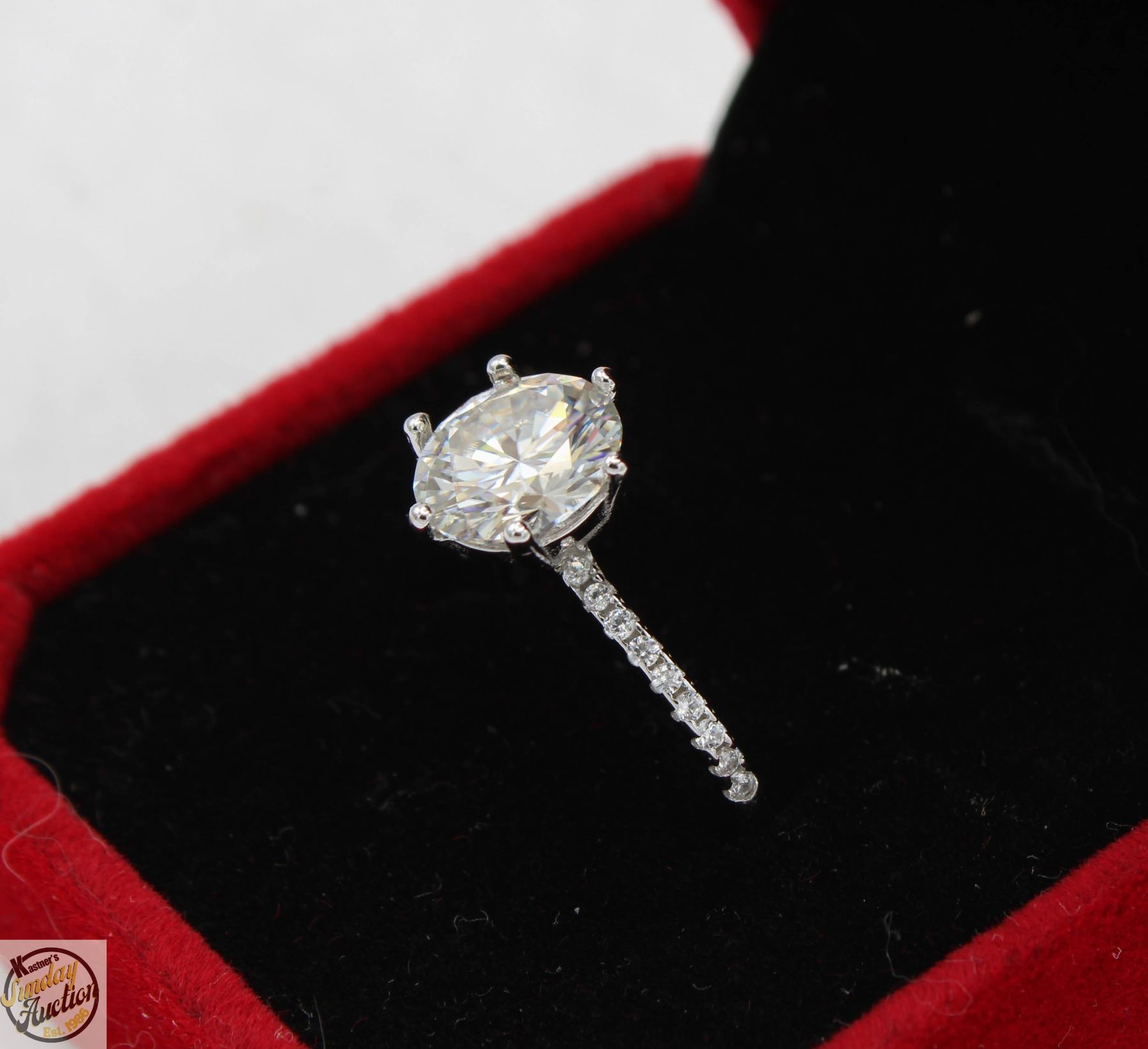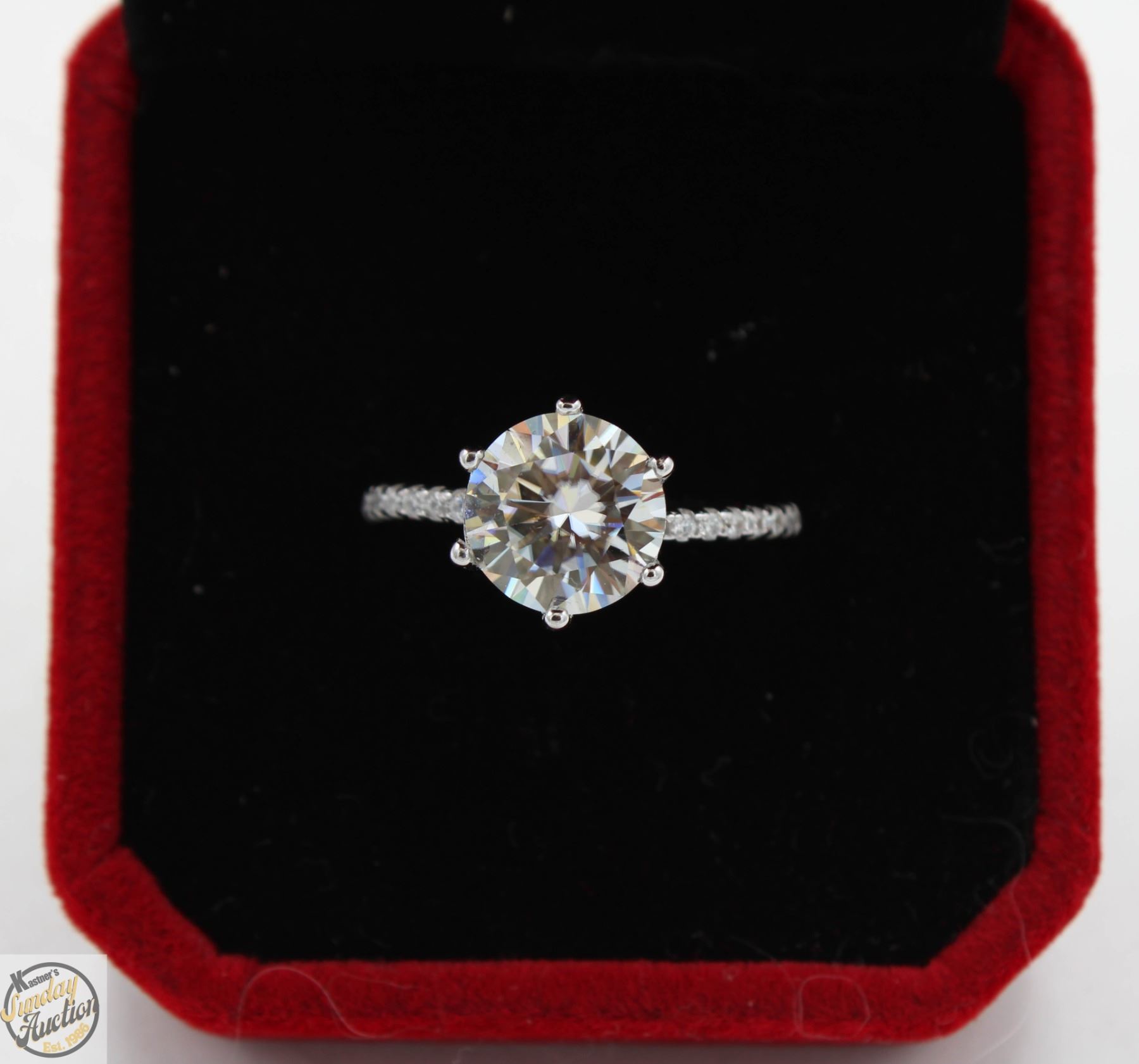 MOISSANITE STONE VVS D COLOR SET WITH 18 ROUND BRILLIANT CUT CUBIC ZIRCONIA SET IN SHANKS SET IN 925 SILVER RING SIZE 7.25 RETAIL VALUE $975.00 **ALL ITEMS MUST BE REMOVED BY 5PM SATURDAY, JUNE 14TH 2025. ALL REMAINING ITEMS WILL BE SUBJECT TO A $6.00 PER DAY STORAGE CHARGE. ANY ITEMS REMAINING AFTER MONDAY, JUNE 30TH, 2025 WILL BE CONSIDERED FORFEITED. NO REFUNDS WILL BE ISSUED FOR FORFEITED ITEMS. TO SCHEDULE A PICK UP APPOINTMENT CLICK HERE