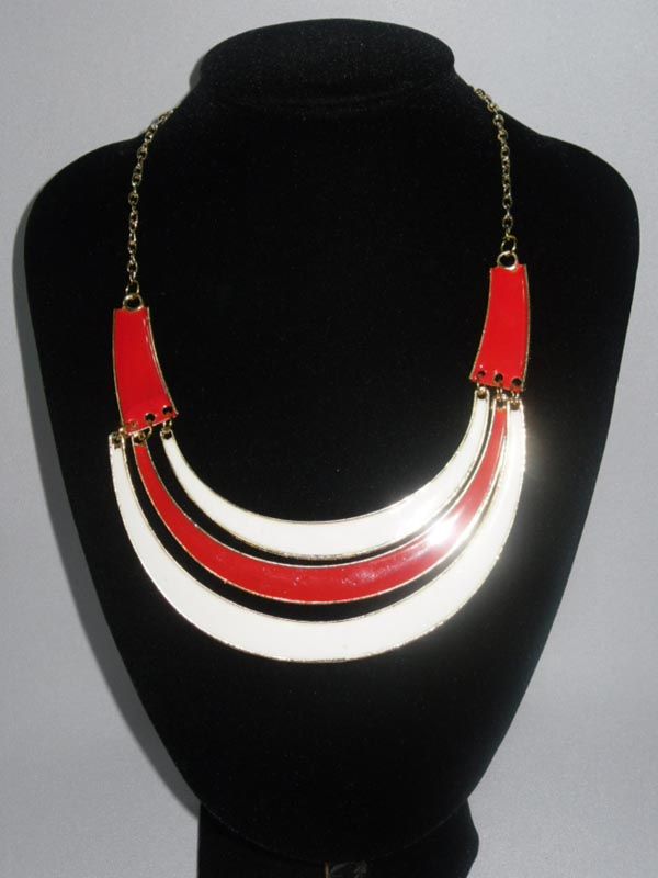 264CTW 3-LAYERED HALF MOON RED-WHITE BRASS NECKLACE;18I **|**|** 264CTW 3-LAYERED HALF MOON RED-WHITE BRASS NECKLACE;18INCH ; MSRP: $200