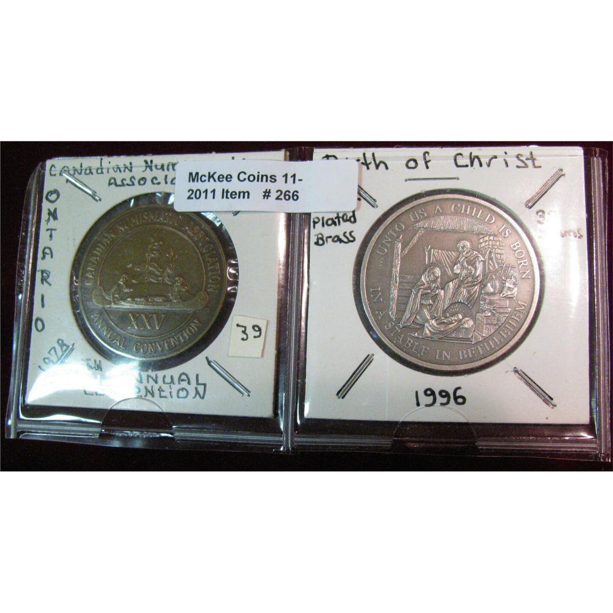 266. 1978 Canadian Numismatic Association Medal & 1996 Birth of Christ Medal.
